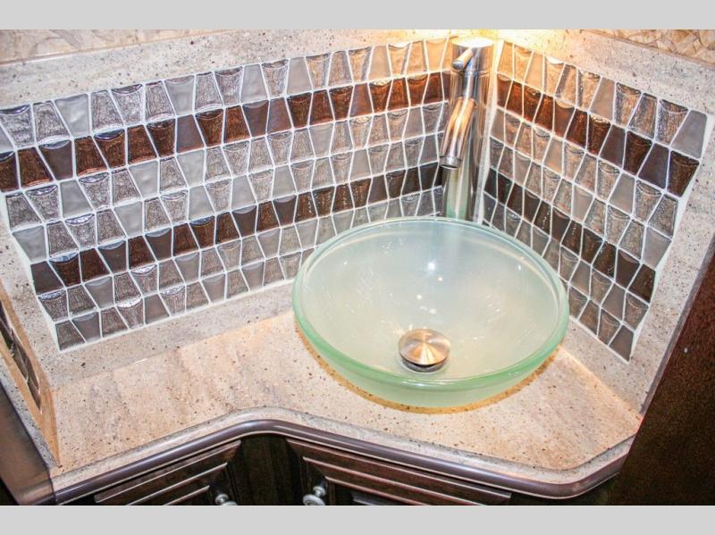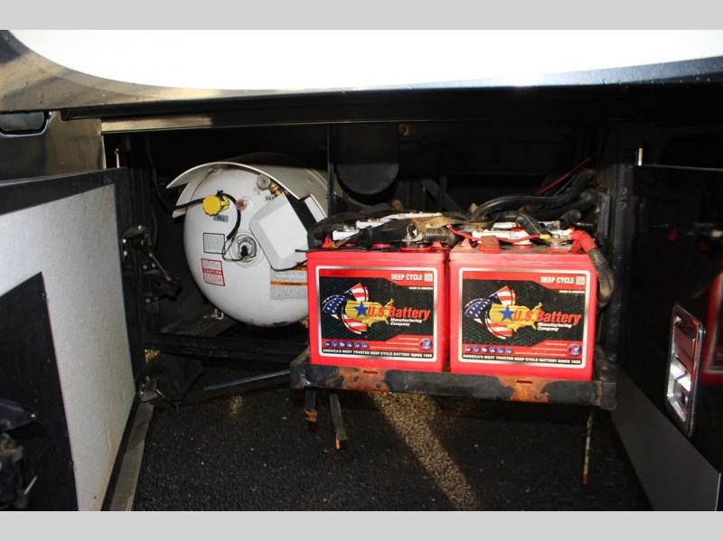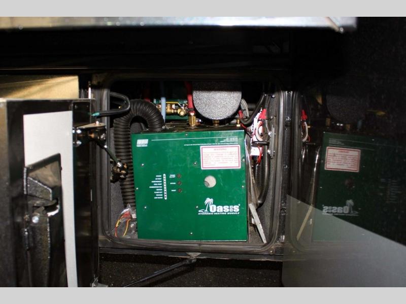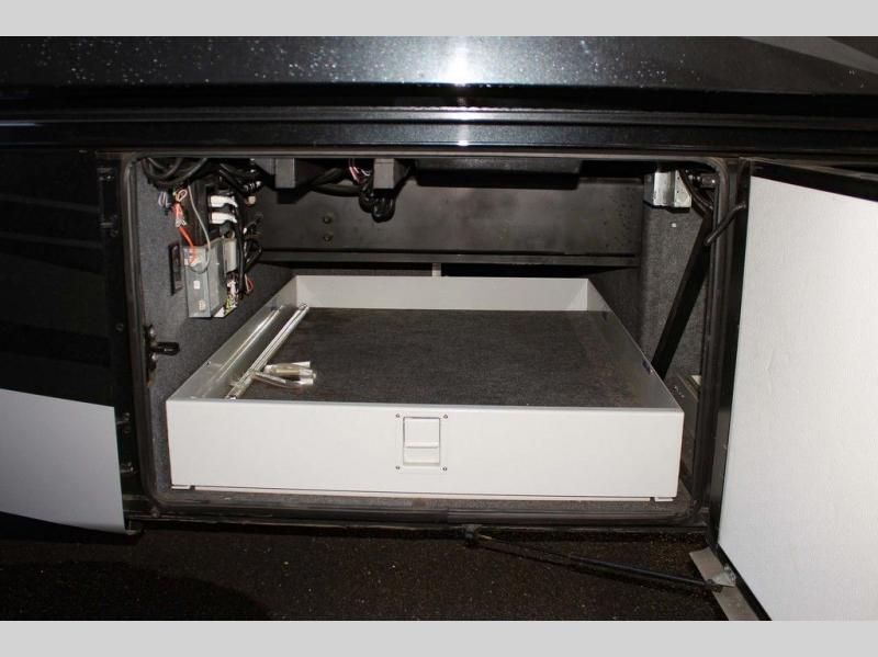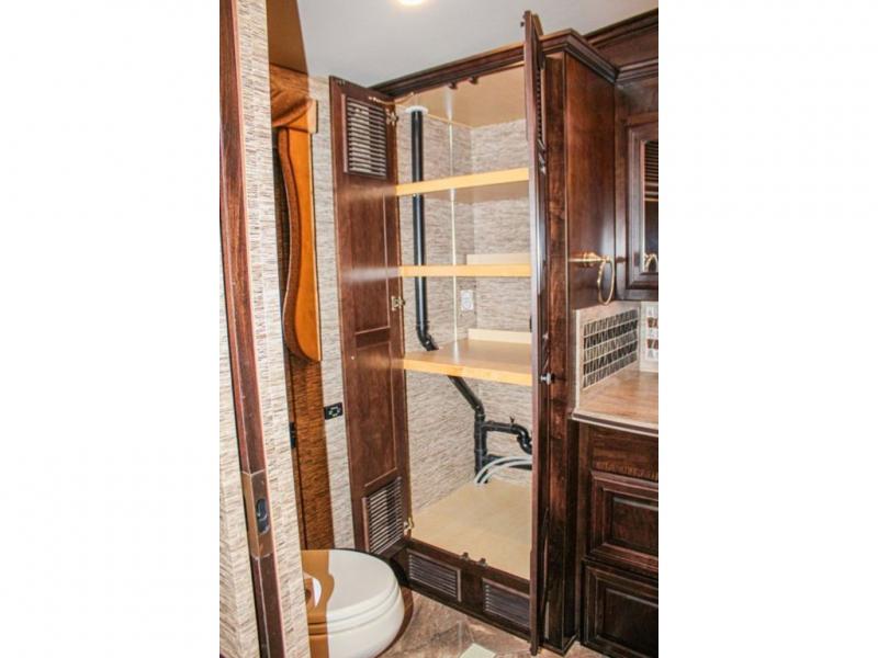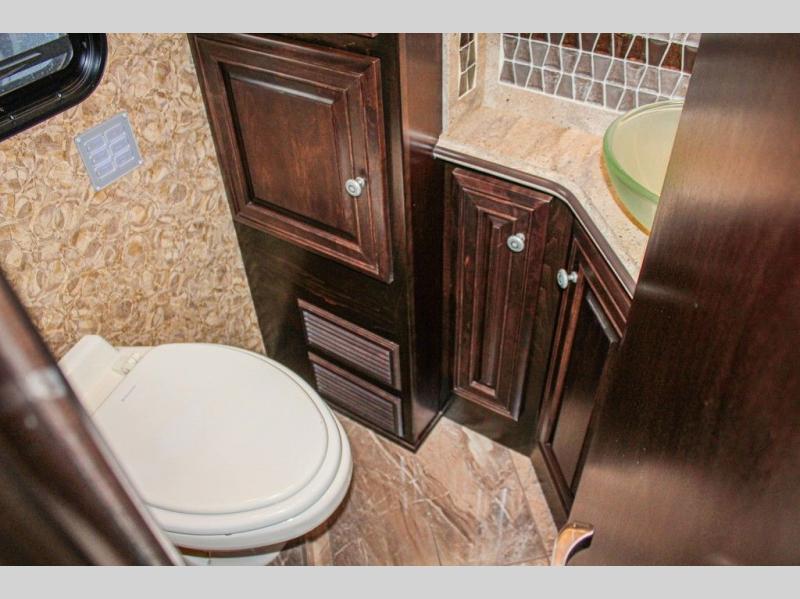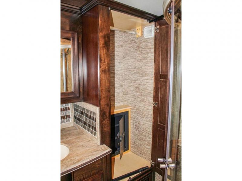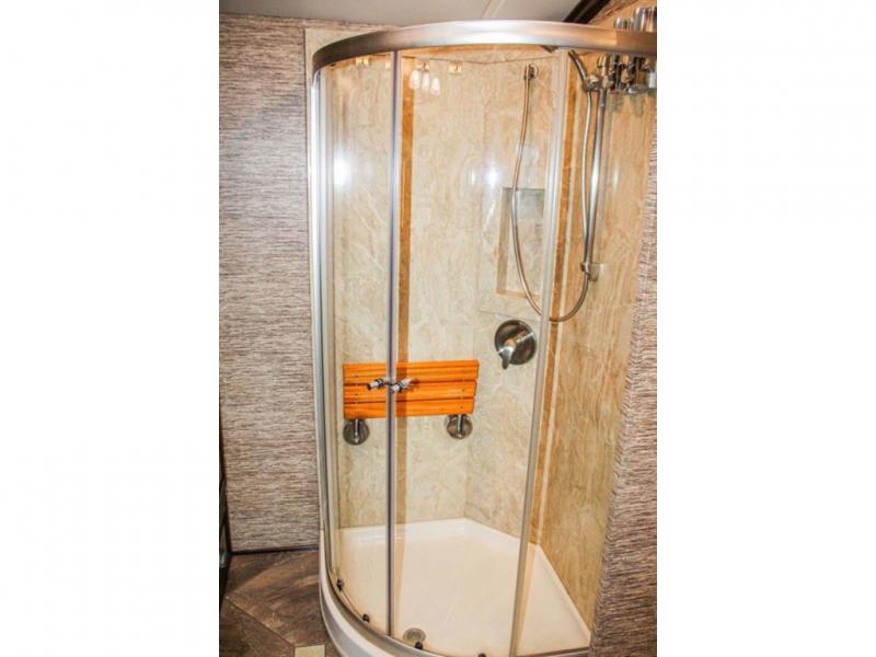 The bedroom has a queen bed slide with an overhead cabinet above the bed and nightstands on either side of the bed. Inside the bathroom you will find a toilet, wardrobe or you can choose to add an optional washer/dryer, sink, medicine cabinet, wardrobe with bi-fold door, and corner shower, and much more!