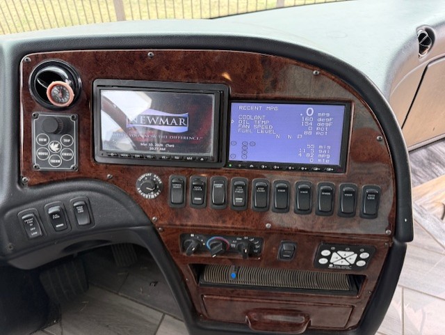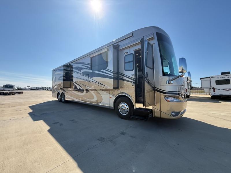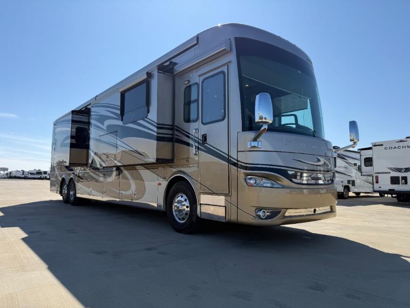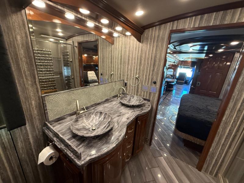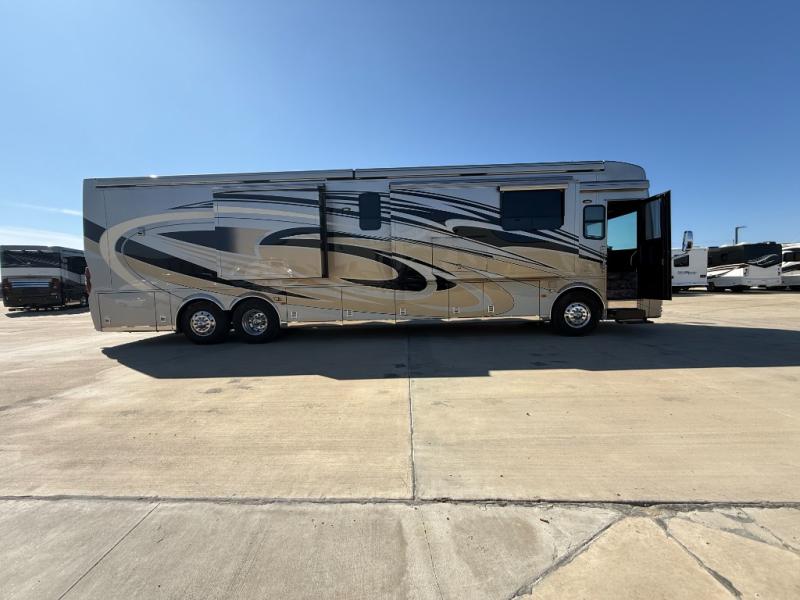 The Essex 4553 class A diesel motor home by Newmar features dual bathroom sinks, a half bath, an appliance garage, a safe, triple slides, plus more!