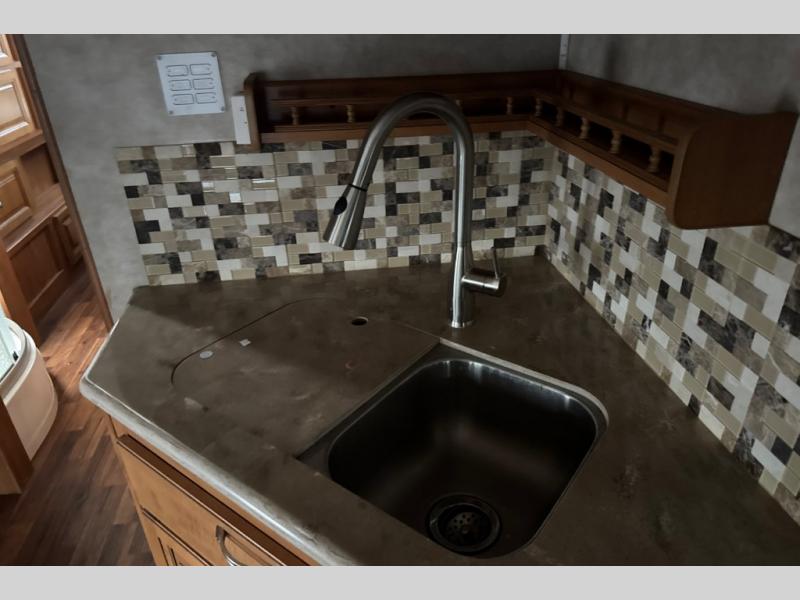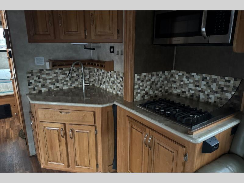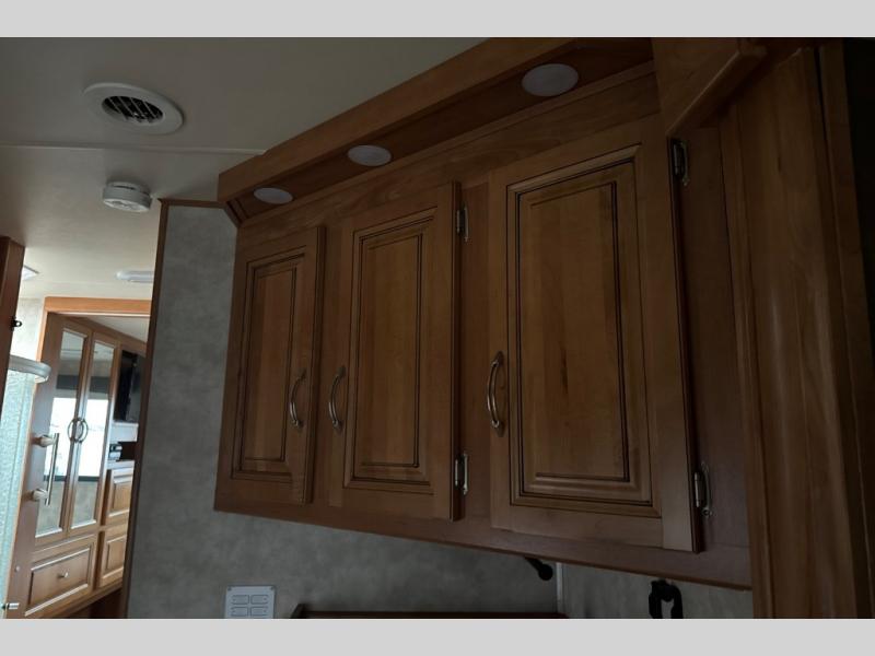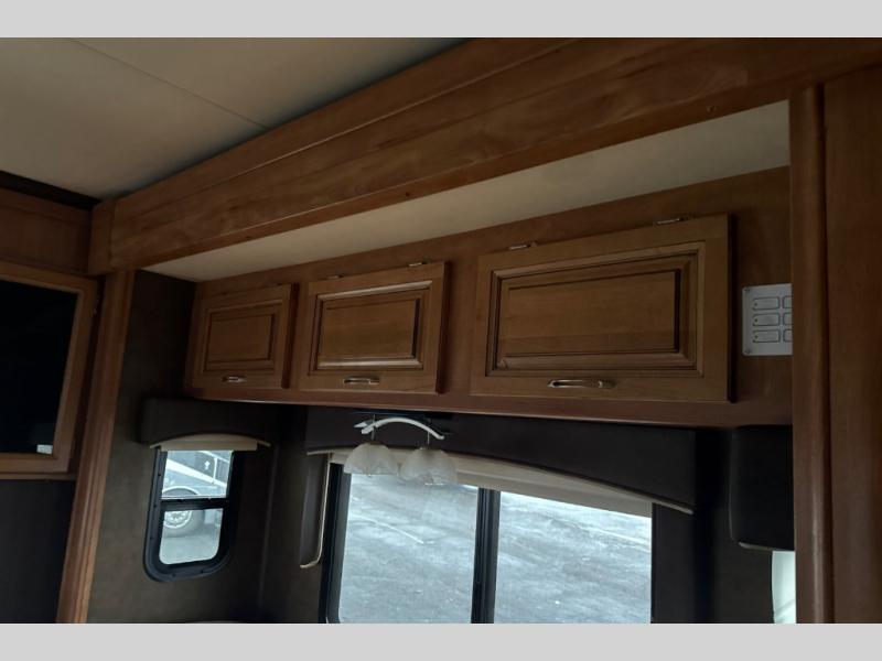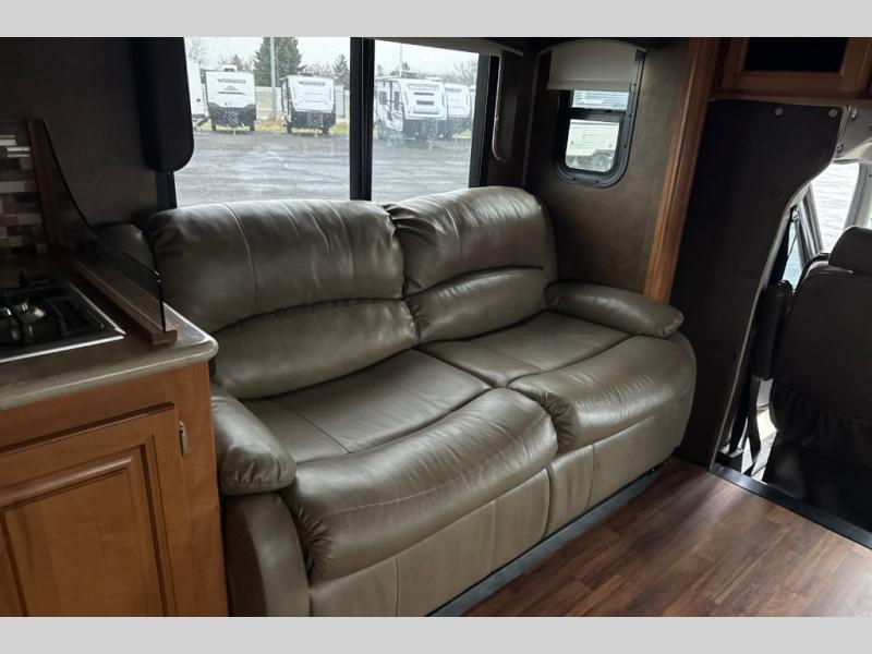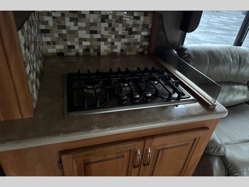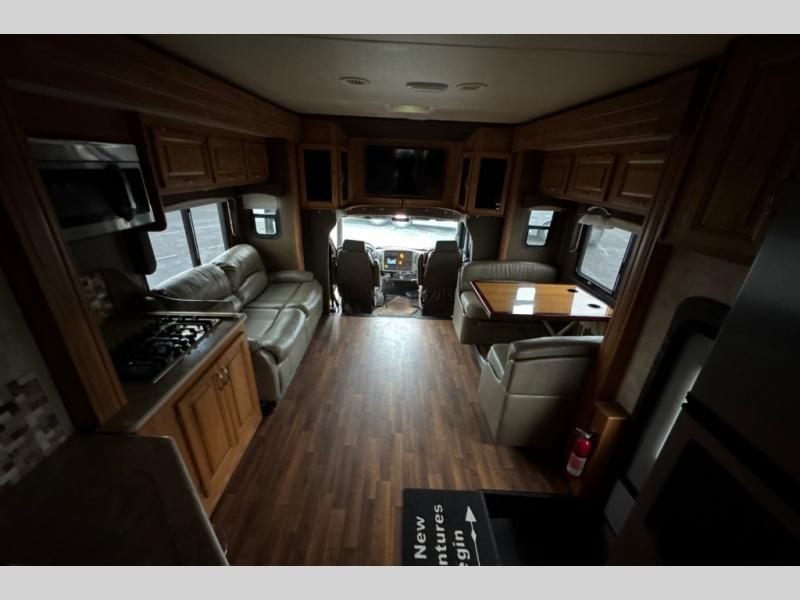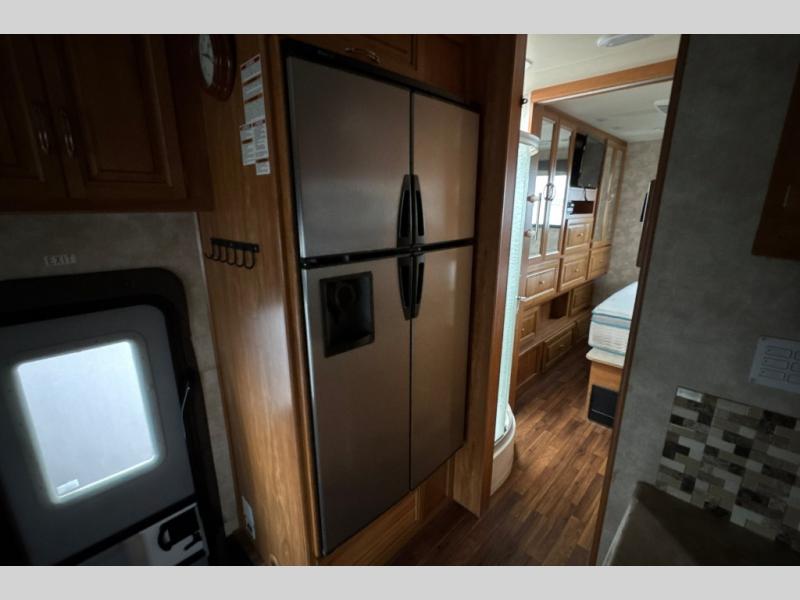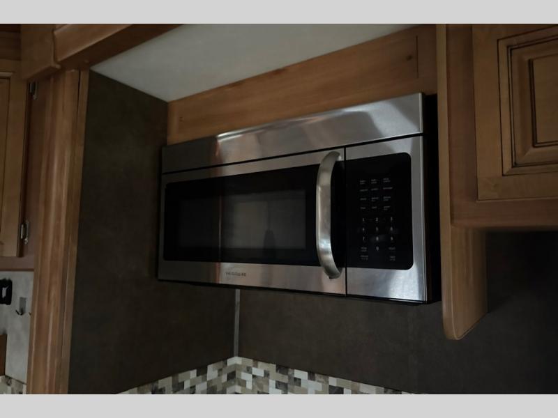 This motorhome has all you need to start your next big adventure. Bring along four to five family members and get ready to make lasting memories! You'll appreciate the rear bedroom with a king bed, an LED TV, and a slide, giving you all the room you need to stretch out. The kids will love the bunk above the cab with an LED TV for late night movies. With two slides in the living area, there will be plenty of room for the kids to play a game on the floor. You'll love making a home cooked meal in the kitchen, featuring a three burner cook top, a convection microwave, and a side-by-side refrigerator w/water dispenser. This unit features a walk-thru bath with a vessel sink, a shower skylight, and a large medicine cabinet. Spend your evenings with loved ones around the fire and enjoy the electric patio awning w/LED lighting. Why wait, come check out this motorhome today!
