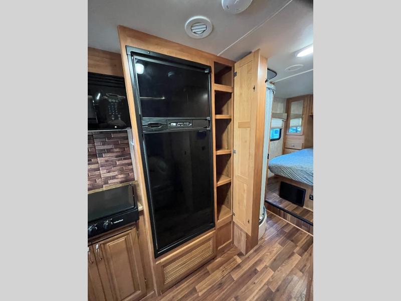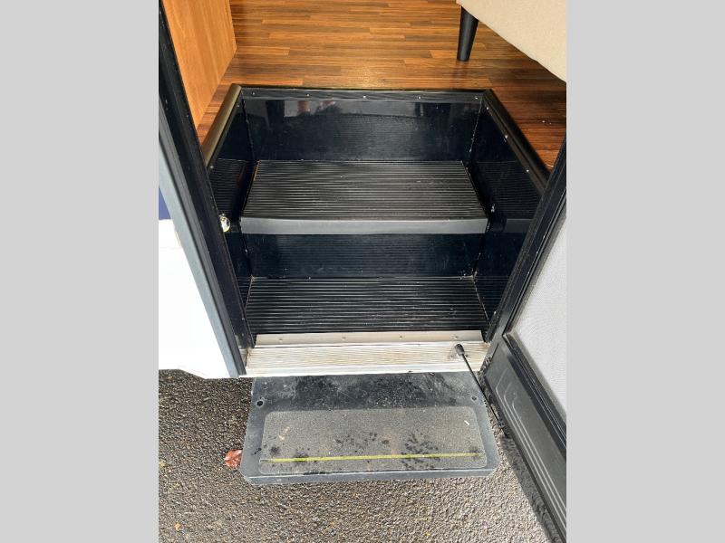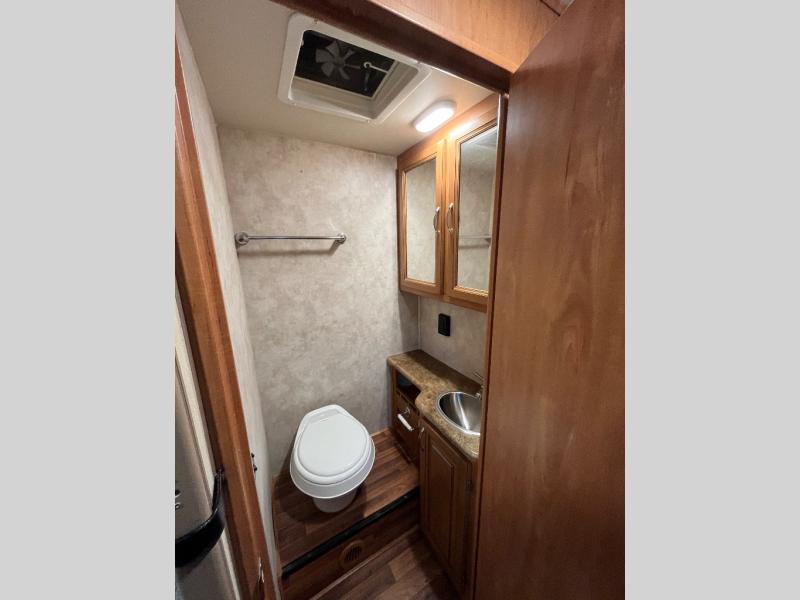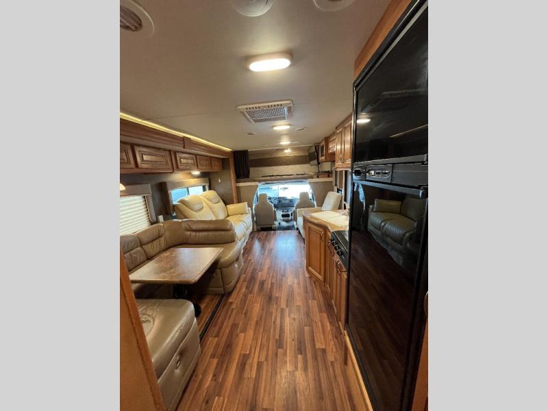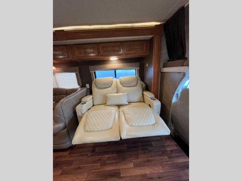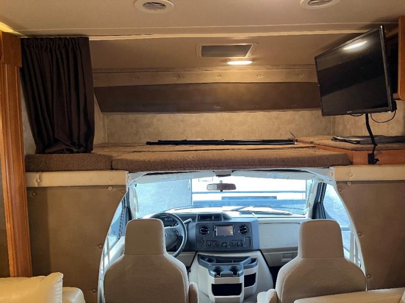 Step inside to find a euro recliner to your right next to the front cab area. You will also find a cab over bunk with an LED TV for extra sleeping space and inside entertainment.