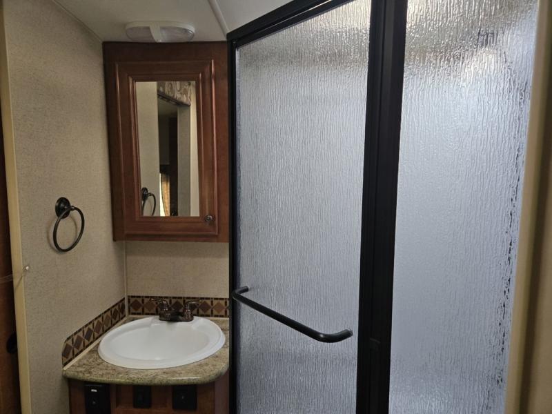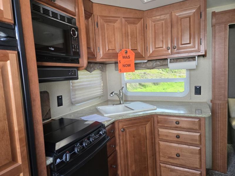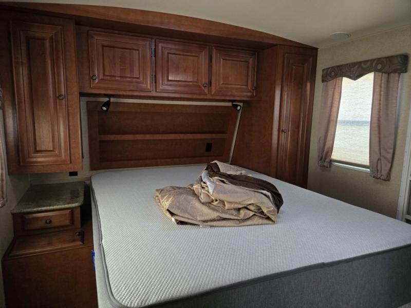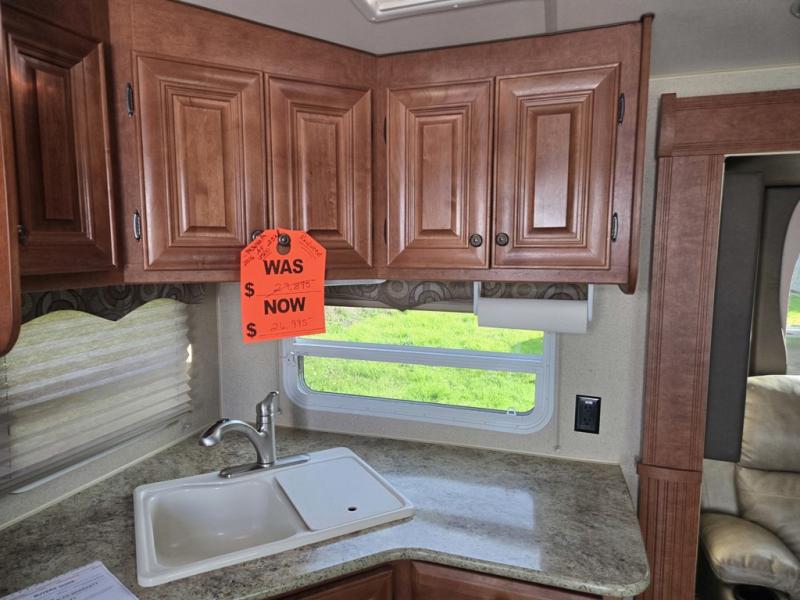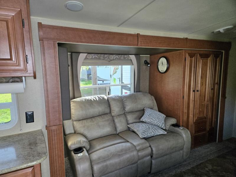 The single slide in this travel trailer provides a more open space and includes a linen cabinet, a wardrobe, a pantry, exterior access storage and a jackknife sofa.