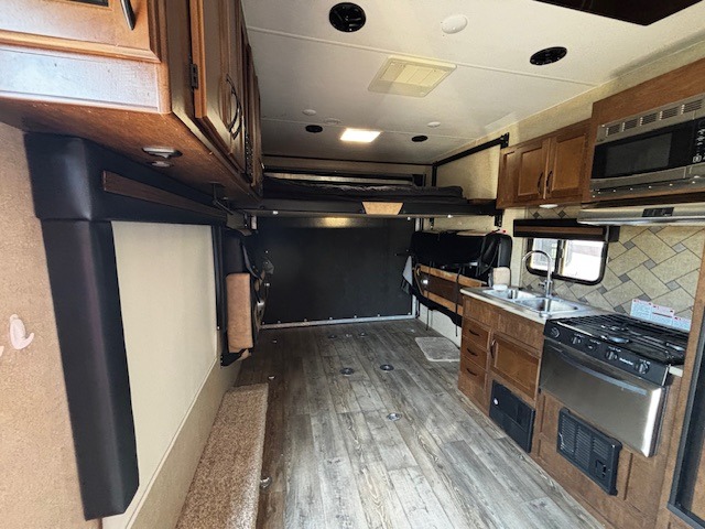 Smart Storage Solutions – Overhead cabinets from the main door to the rear overhead bunk help keep your gear organized and accessible.