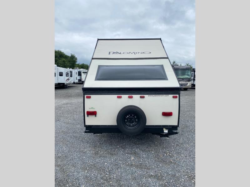 It's time to camp above ground inside hard walls in the Real-Lite A-Frame Series model 12R. This pop-up folding camper by Palomino provides a bed, booth dinette, plus much more!