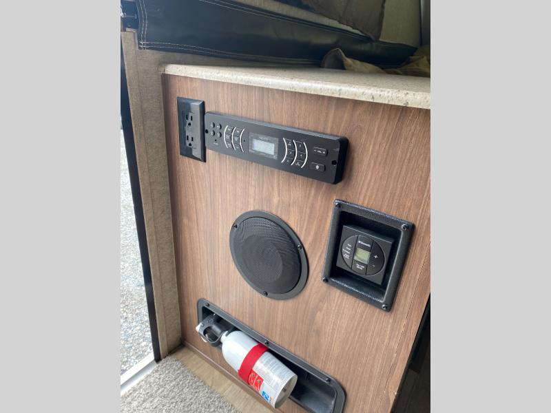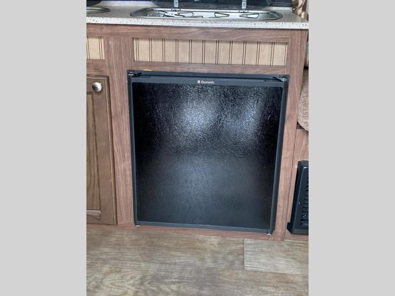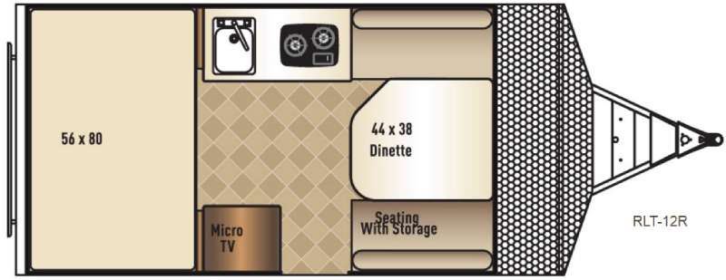 On the opposite side there is a microwave and TV, plus countertop. In the rear of this A-Frame Series model you are sure to enjoy the 56" x 80" bed.