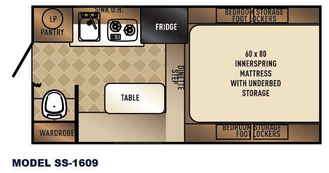 The front queen bed features bedroom storage and foot lockers on either side of the bed, and so much more!
