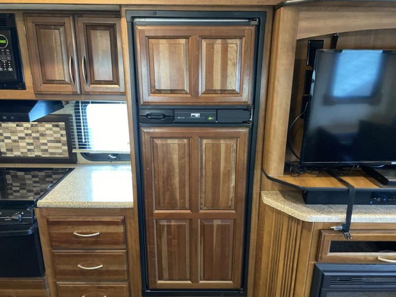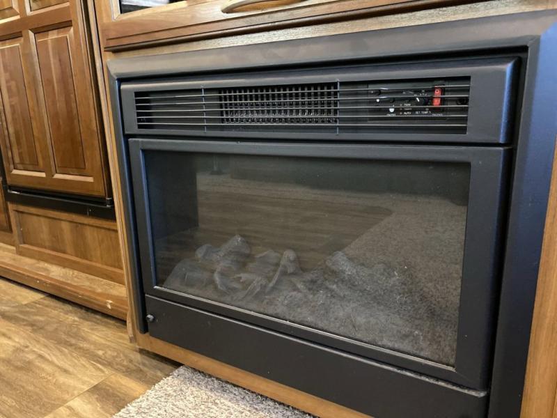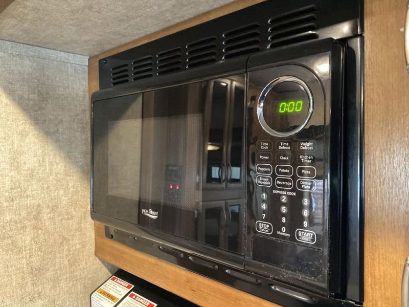 Check out the cooking area before heading inside. Along the curb side within the outer slide you will find a refrigerator, overhead storage, and a two burner cook-top. This will make cooking meals easy when you want to enjoy the great outdoors.