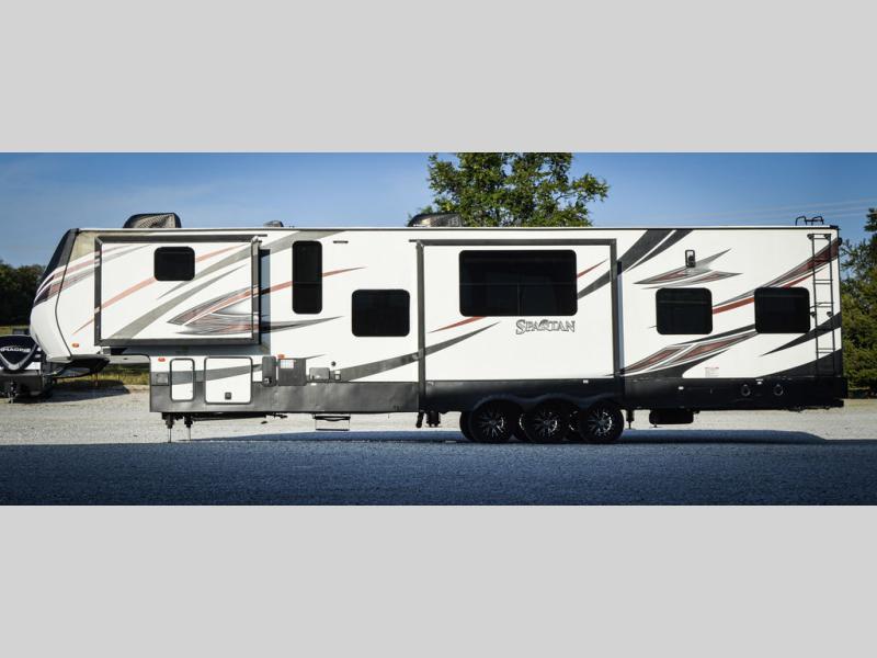 The 1245 Spartan toy hauler fifth wheel by Prime Time Manufacturing makes it easy to load up your family, your off-road toys, and start your next weekend adventure! With a large cargo area, a bath and a half, triple slides, and a loft there is plenty of space for the whole gang.
