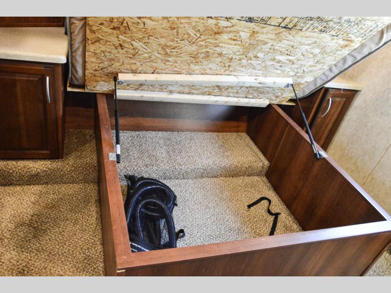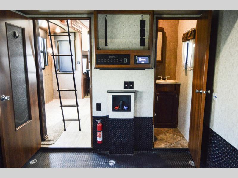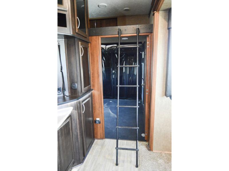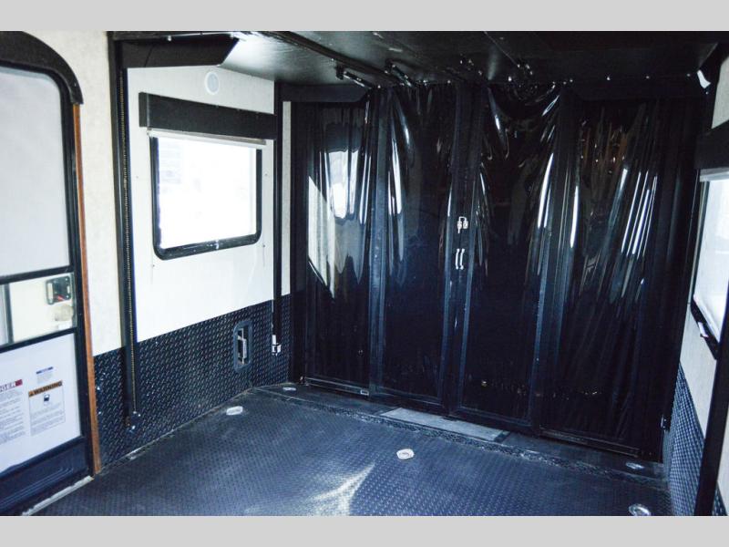 Above the garage area is a loft which helps your kids have their own space. Inside the garage find a Happicjac electric lift system with an adult sized bed above and dual folding sofas below. There is also a convenient half bath off of the garage area, and an easy access side door. The spring assist ramp door allows for easy loading and unloading of your off-road toys, and more!