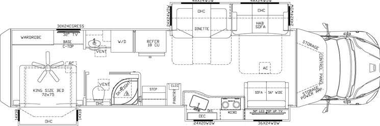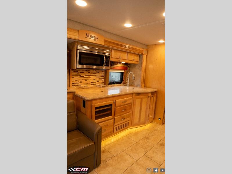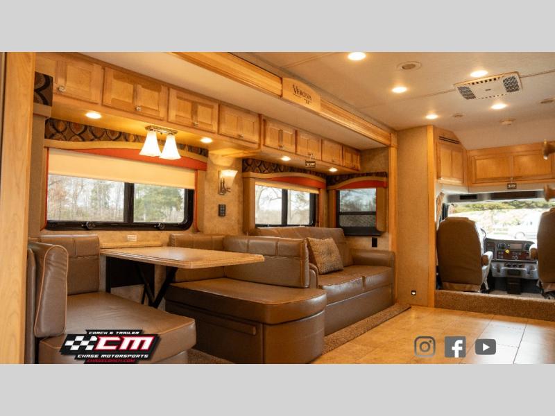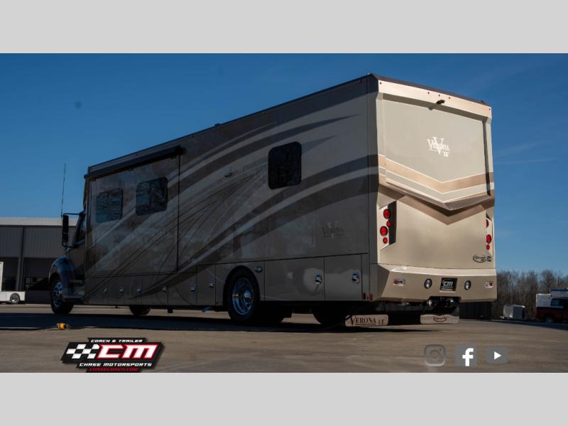 Travel in style and comfort in the Verona LE 40LTS class C motor home. This model features dual opposing slide outs in the front, and a slide out in the rear. You can easily travel with your family of six to new destinations!