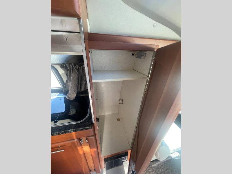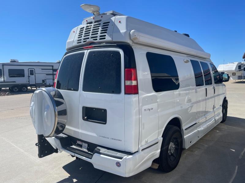 The 190-Popular Class B motorhome by Roadtrek Motor Home offers spacious rear sleeping with a king size bed across the back or two twin beds if desired. The front passenger side chairs can also be converted to a bed.