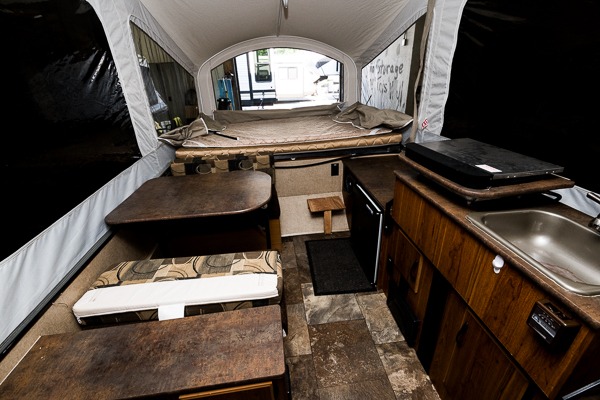 You will easily be able to cook up light meals and snacks with the stove top, and dine at the booth dinette inside. The stove is a carry out model so you can easily cook up a few things outside if you wish.