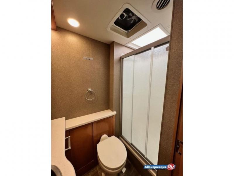 Immediately to the right of the entry is a euro recliner. There is an overhead bunk included above the cab for additional sleeping space.