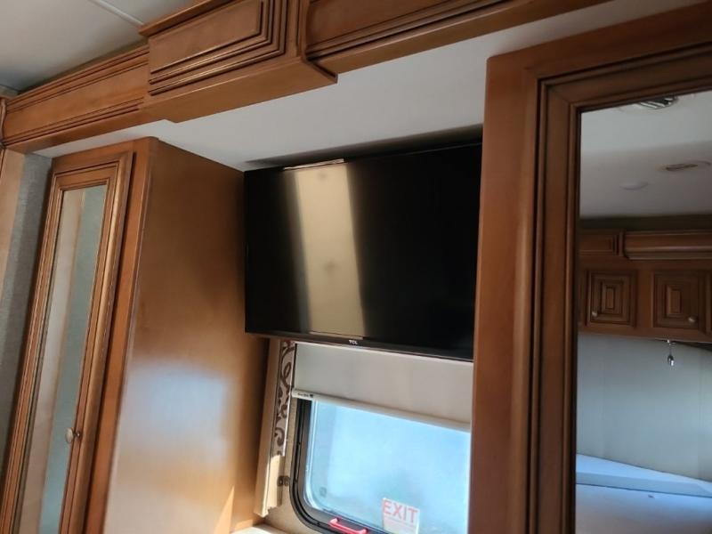 As you enter, you will a 40" LED TV and an overhead bunk above the cab to your right.