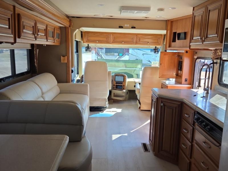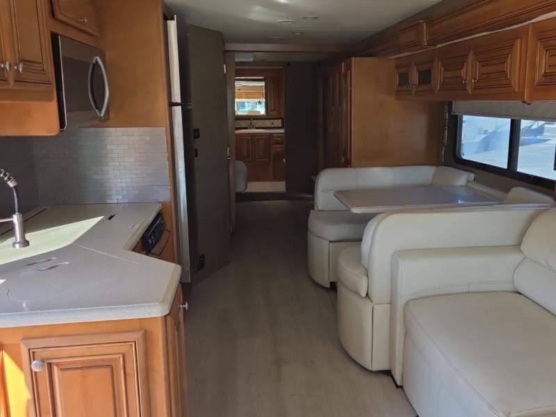 Arriving Soon!Step into the Palazzo 36.1 class A diesel motorhome from Thor Motor Coach to find full wall slide on the road side and a bath and a half.