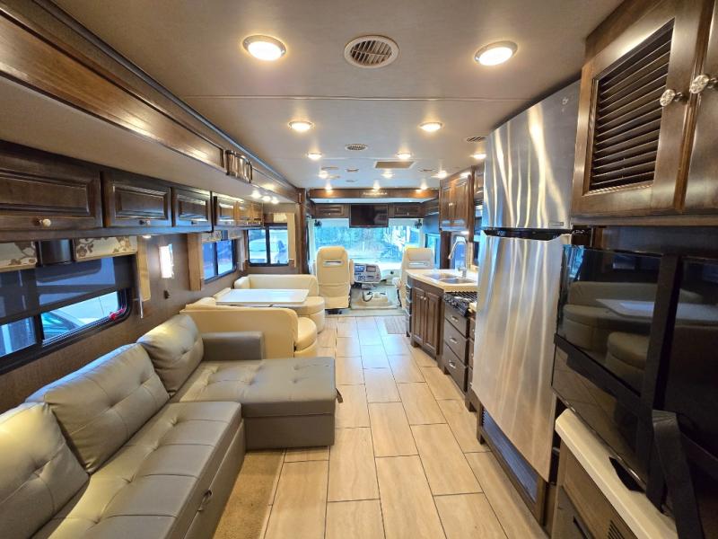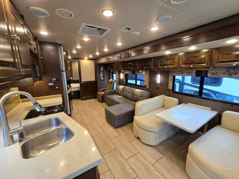 Step into the Allegro 36 LA class A motorhome to find two captain's chairs and overhead cabinets at each side in the front of the coach. You may choose an optional center TV and an optional driver side door.