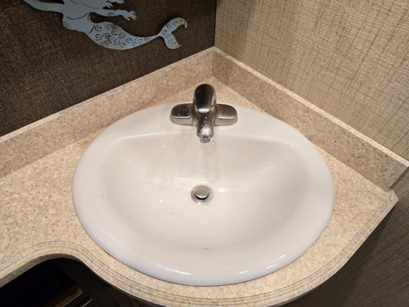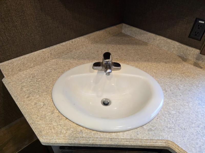 The rear bathroom provides lots of overhead cabinets, a shower, an optional tub, toilet, large corner vanity and sink as well as the option for under counter combo washer/dryer, and more!
