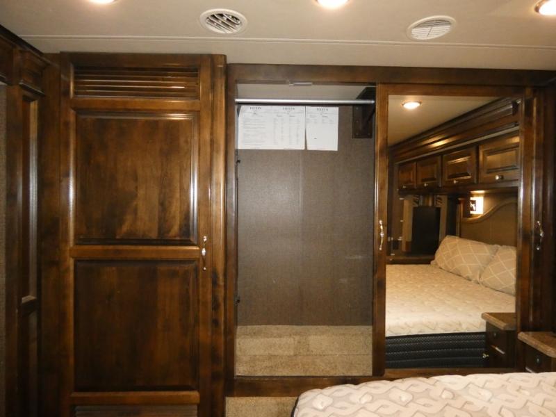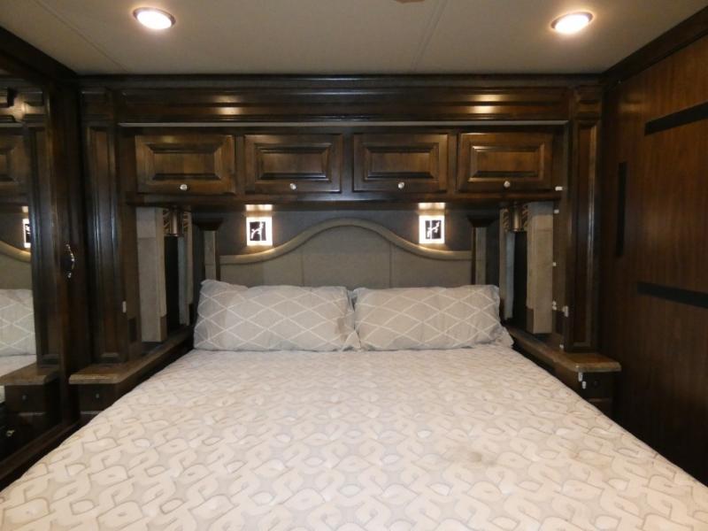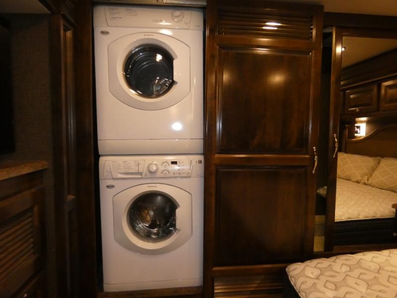 Lastly, find a spacious bedroom area with slide out king bed including nightstands and overhead storage. Along the rear wall find a closet for clothing storage, plus a washer and dryer. The side opposite the bed features a second bedroom slide out with overhead cabinets including drawers beneath, and a flat panel TV, plus so much more!