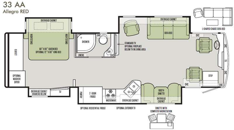 This Tiffin Allegro RED class A rear diesel coach 33 AA offers quad slides, a rear bedroom, and all the amenities you need to enjoy any future road trip.