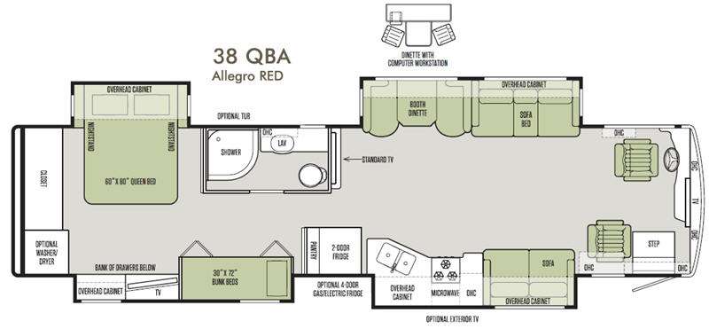 The perfect family ride when you travel! This Allegro RED class A rear diesel coach has all the amenities you need for your family, plus the space that makes it comfortable when traveling with a larger group, or added guests.