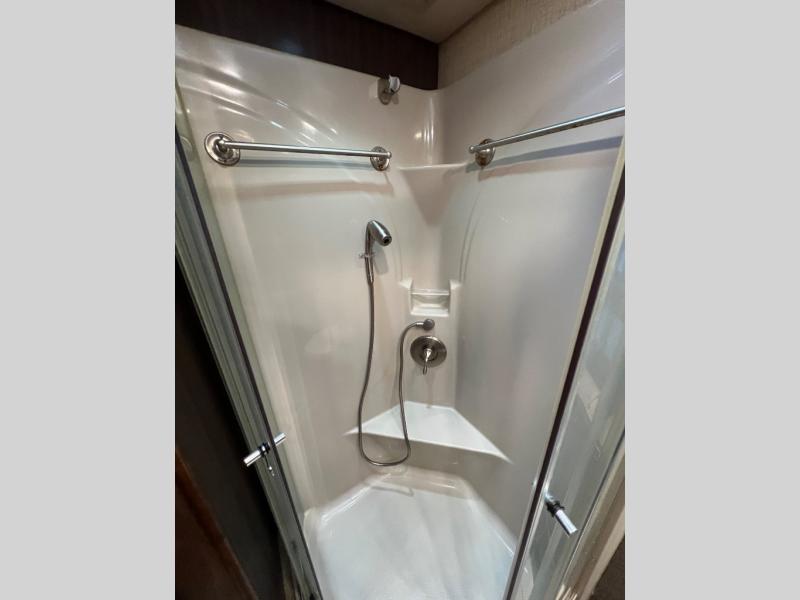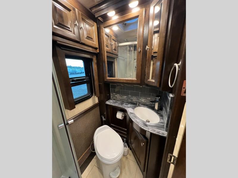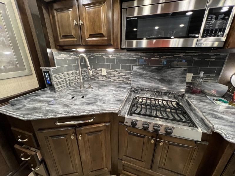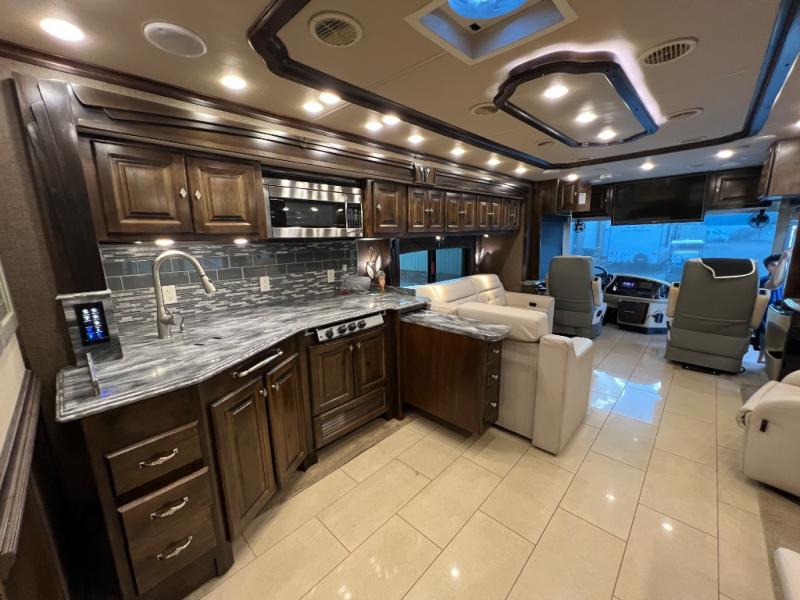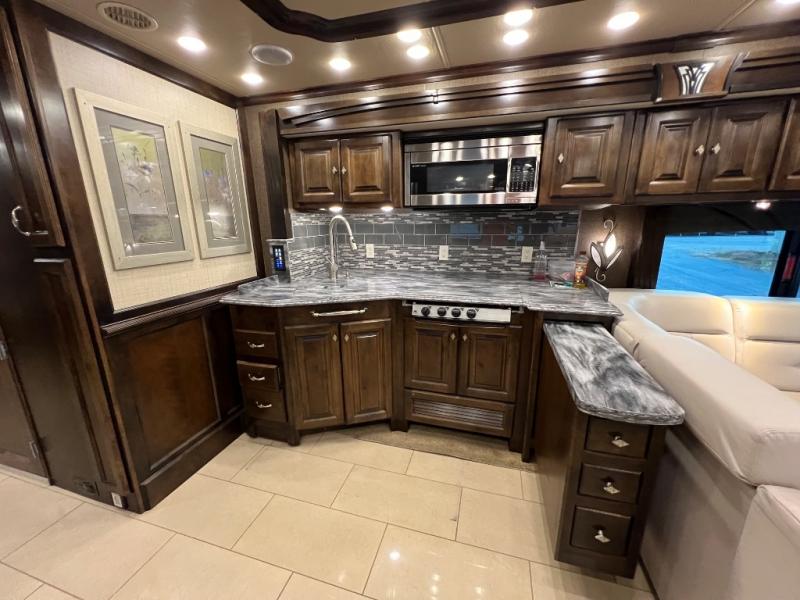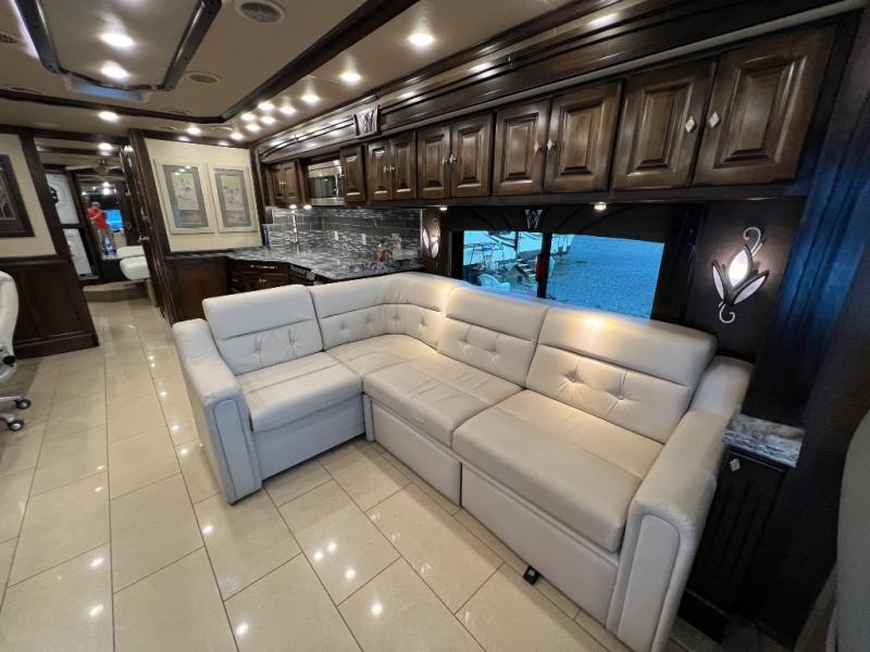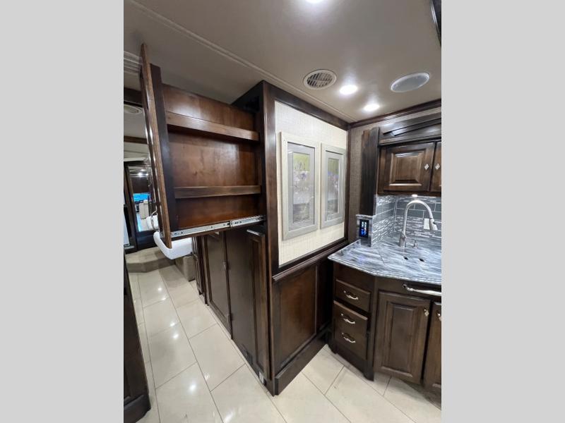 At the front of the Phaeton 36 BH, you will find more overhead cabinets as well as the option for a center mounted TV.