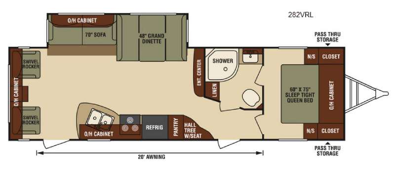 Under the bedroom area there is a pass thru storage area, and outside you will also find a 20' awning, plus so much more!