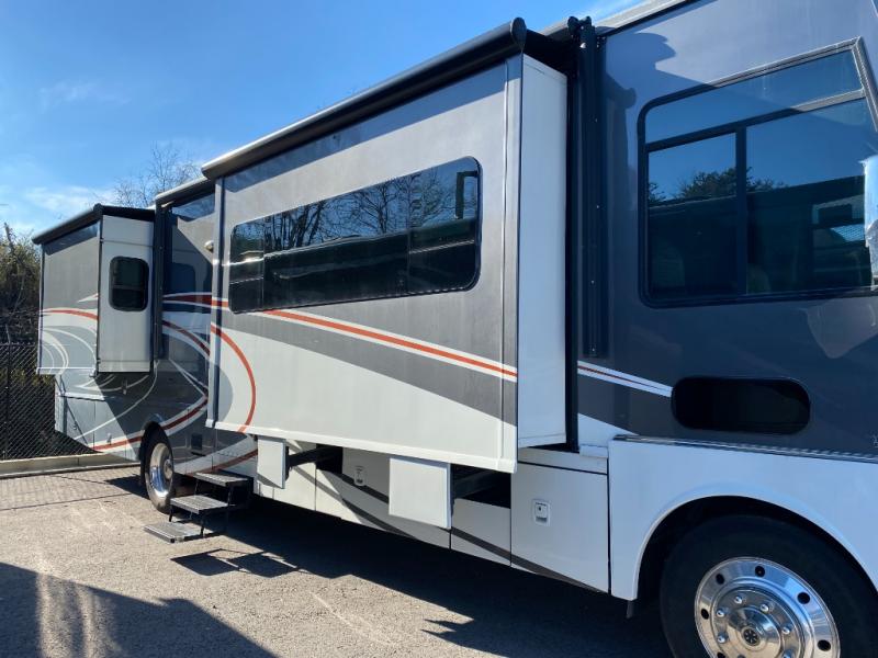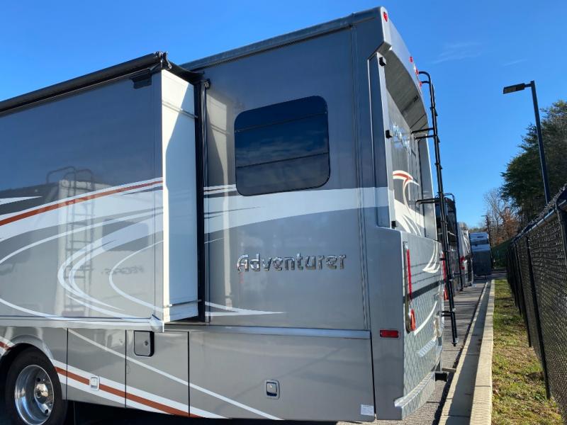 At 38 feet in length with three expansive slideouts, the Adventurer 37F delivers an open, spacious layout that makes extended stays feel effortless. The full-wall slide along the driver’s side stretches the entire coach, dramatically expanding the living area, kitchen, and bedroom into a wide, airy environment.