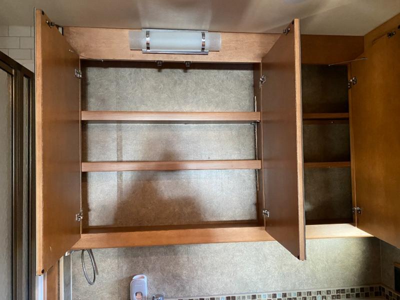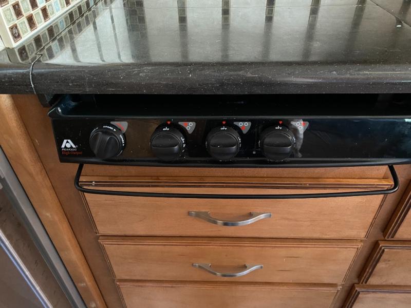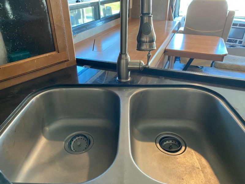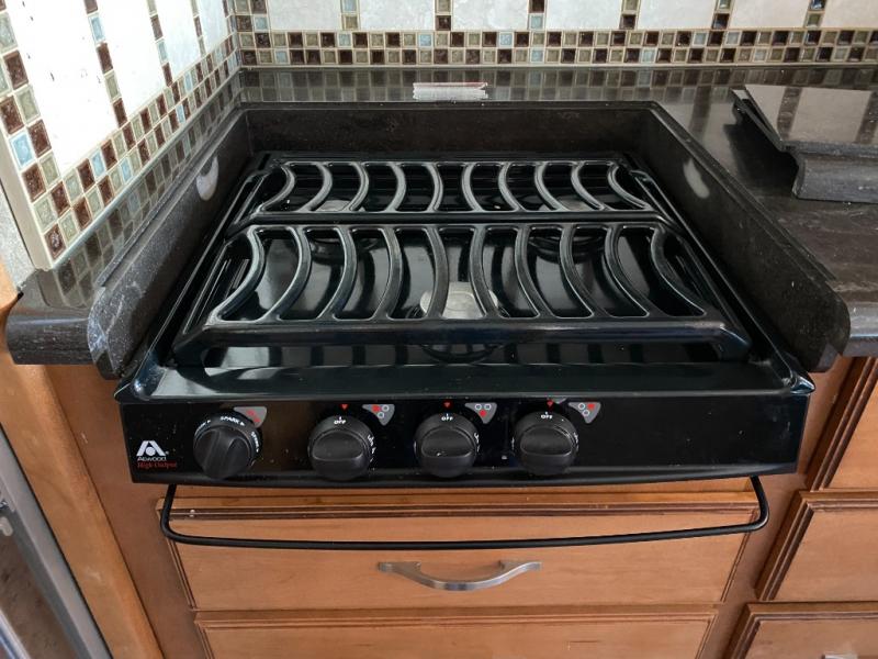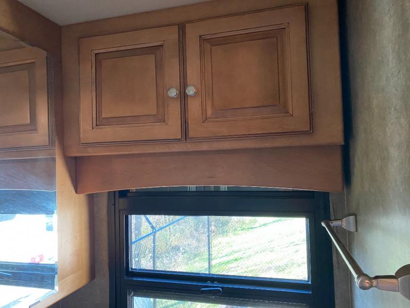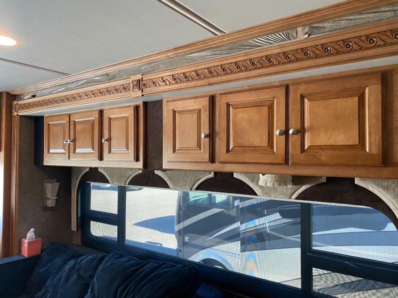 The residential-style kitchen is one of the most impressive features of the 37F. It boasts solid-surface countertops, a stainless refrigerator, convection microwave, three-burner cooktop, abundant storage, and ample counter space. Whether you love to cook or prefer quick meals on the road, this kitchen is built to impress.