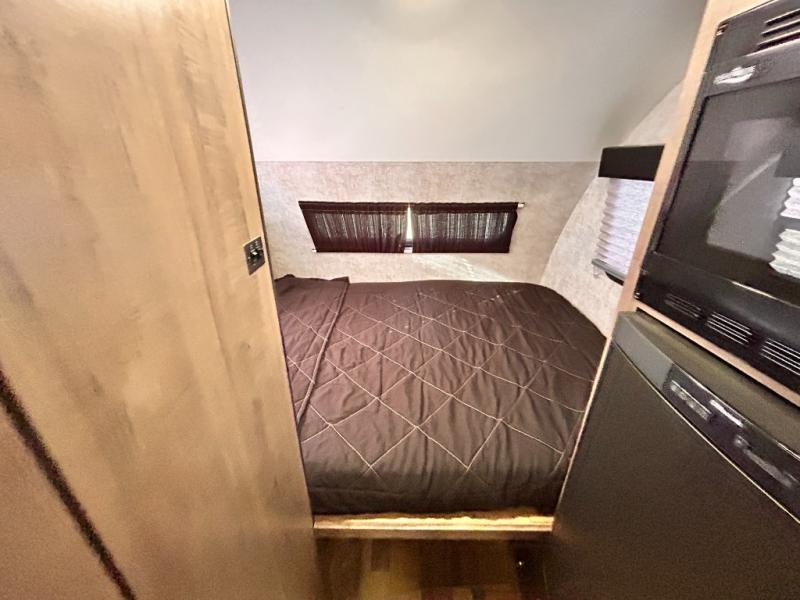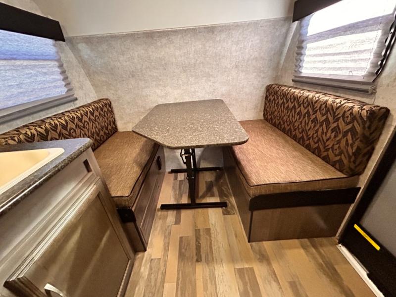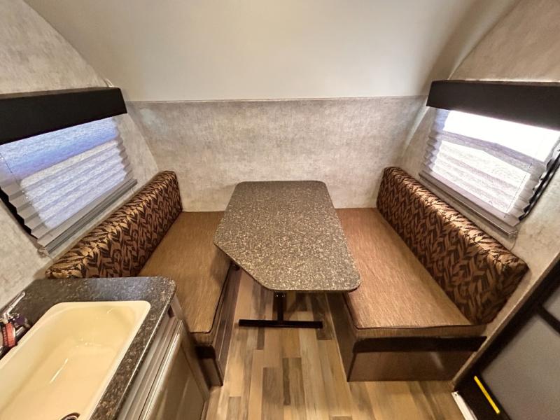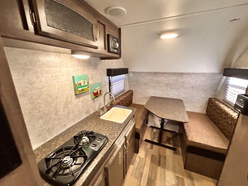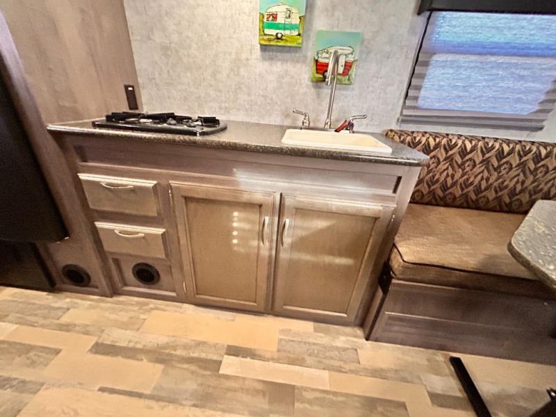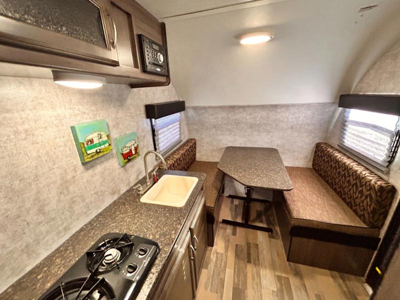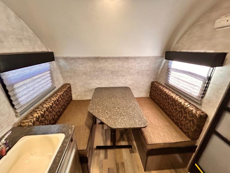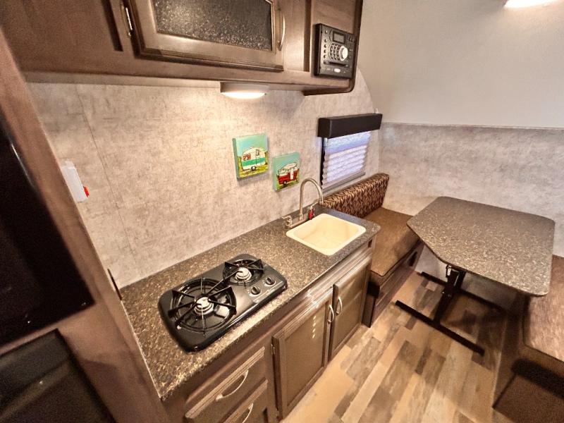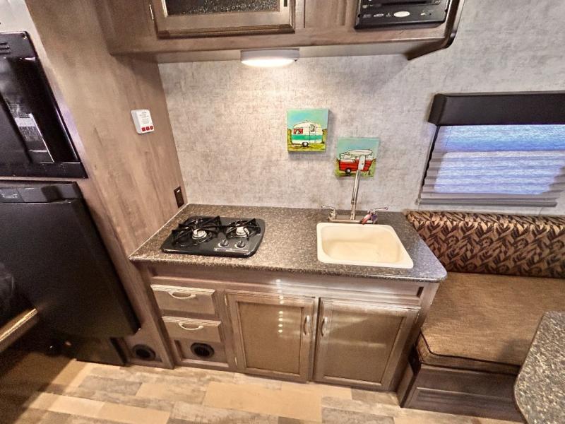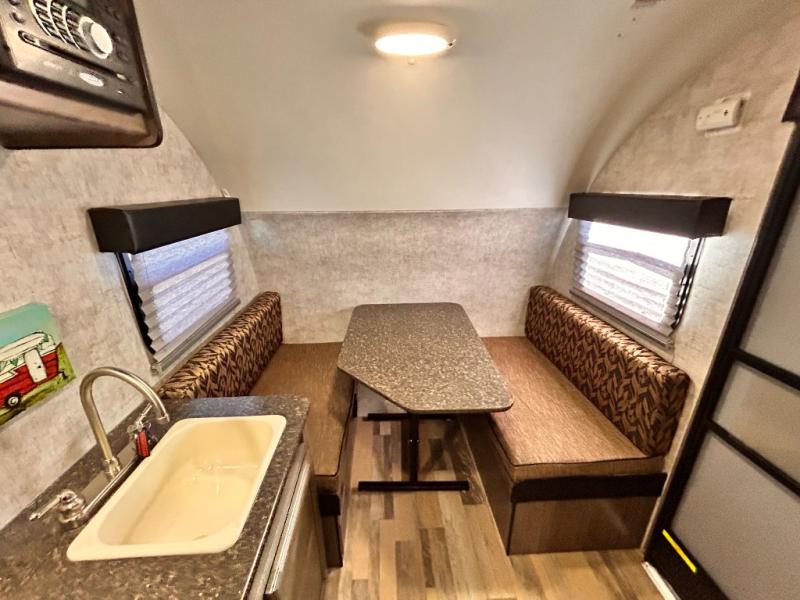 Aerodynamic, easy to tow, and full of features are three great reasons why the Minnie Drop should be your next camping trailer. The modest yet roomy design allows for 6'5" of headroom in the main living space, and a cozy feeling when lying in bed or sitting at the dinette table. Some models include a slide out creating even more space inside of your private camping cottage. Don’t overlook the modern conveniences of a bathroom, water heater, and cooking arrangements that help to make your home away from home comfortable. So, load up the storage and let’s go camping!