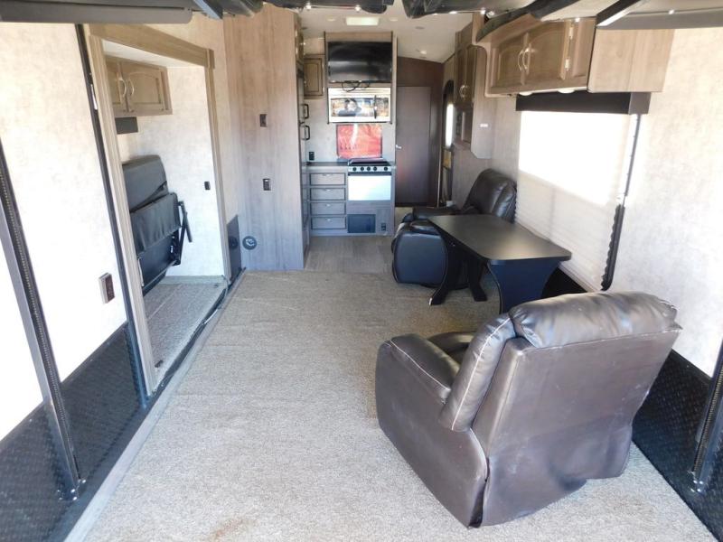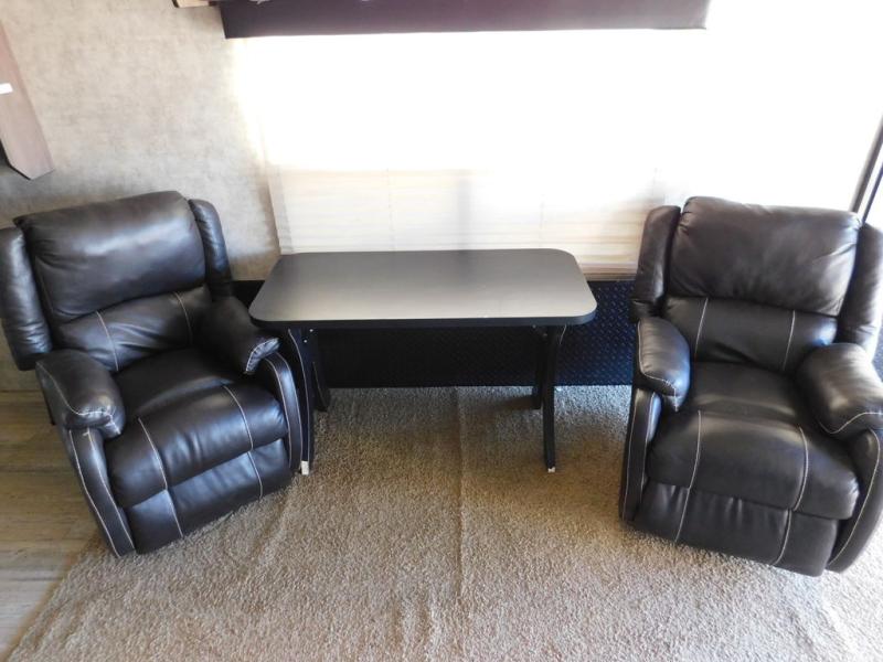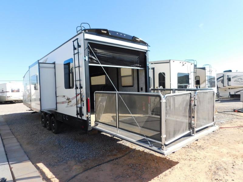 This model features tons of seating with two 72" fold-up sofas or optional lounge chairs in place of one sofa. There are also dual opposing sofas on a power bed lift in the cargo area that you can enjoy once your toys have been removed. Add the optional additional queen bed lift for added sleeping space and take along a few extra friends, plus so much more!
