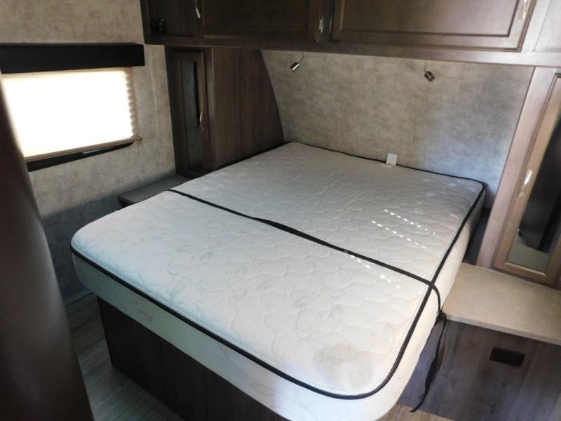 Rest comfortably in the front master bedroom on a queen size walk around bed. There are dual bedside wardrobes and nightstands, plus a large overhead cabinet for even more storage.