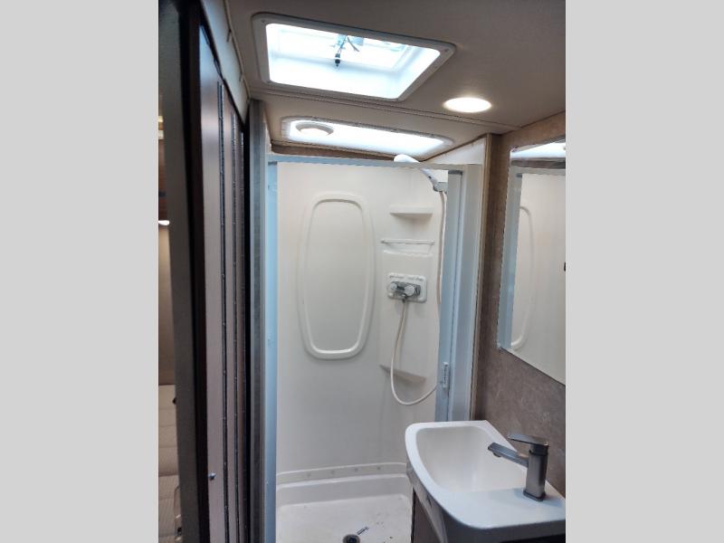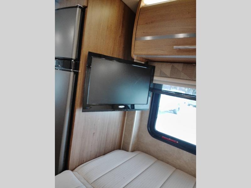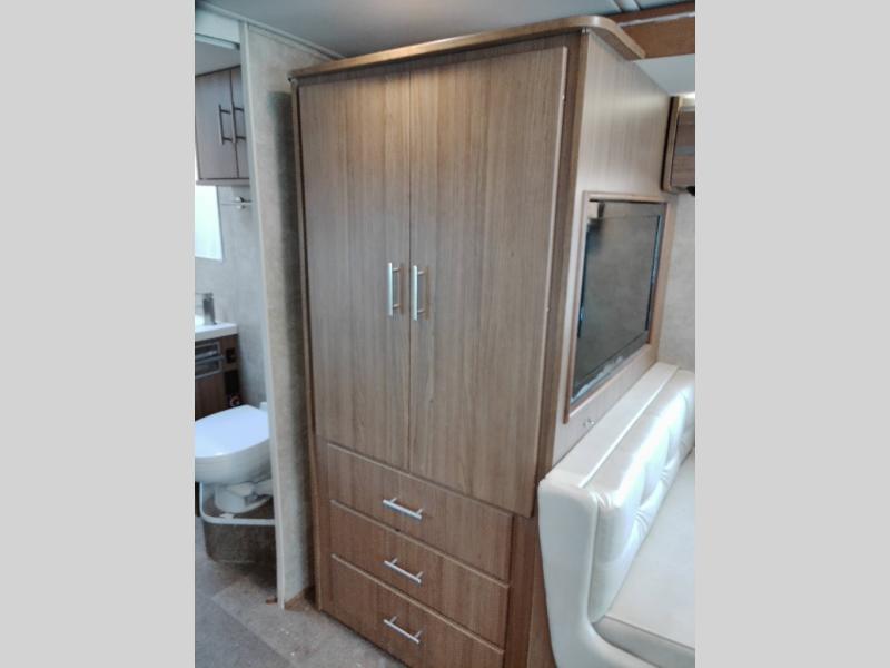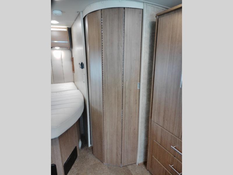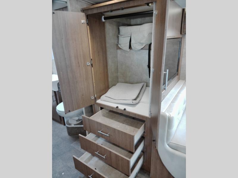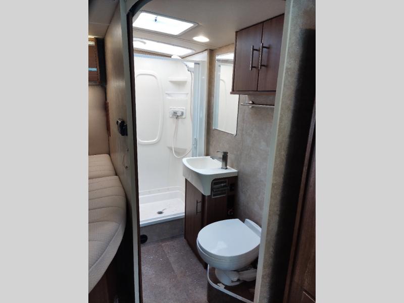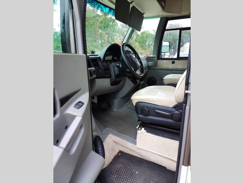 Offering versatility for a Class A Diesel on the Mercedes Benz Sprinter Chassis. The Winnebago Via 25P with a rear corner bed and the BenchMark Dinette. The 25P includes one slideout that houses the Dinette and the Wardrobe.