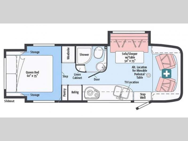 There is a place for a moveable pedestal table that sits in the main room between the front driver and passenger seats when they are swiveled around creating a great conversation area.