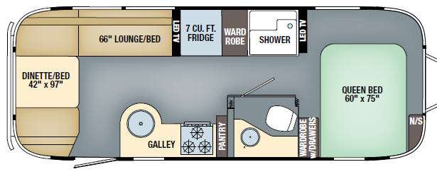Enter and find along the rear wall a dinette/bed that is 42" x 97" which is perfect for dining or just hanging out. Along the road side wall straight inside the door there is a 66" lounge/bed as well providing ample seating for everyone. There is even a LED TV nearby to enjoy.