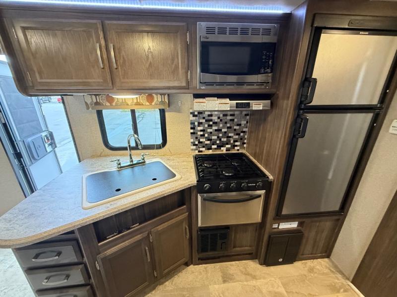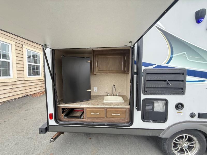 And, if you want to enjoy your time outdoors you have the convenience of an outdoor kitchen near the rear of the trailer. It features an outside refrigerator which is perfect for stocking refreshments so you don't have to keep going inside while you enjoy a little fresh air. There is also a small sink for easy cleanup too, and more!