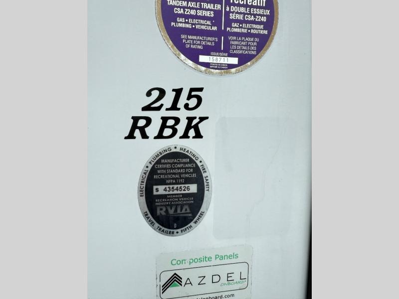 Camp comfortably in this 215RBK Apex ultra lite trailer by Coachmen RV. This model features a complete rear bath with angled shower, toilet, sink with medicine cabinet, and a storage wardrobe that is above the outside kitchen.