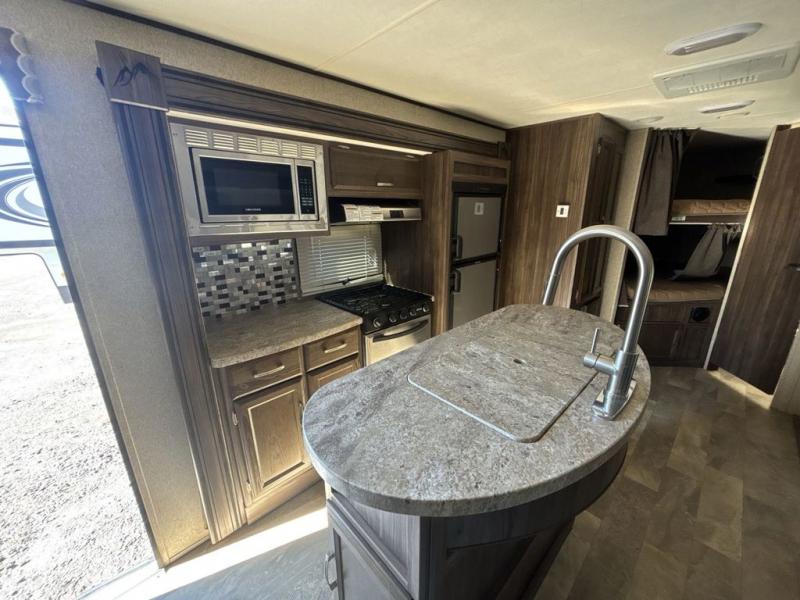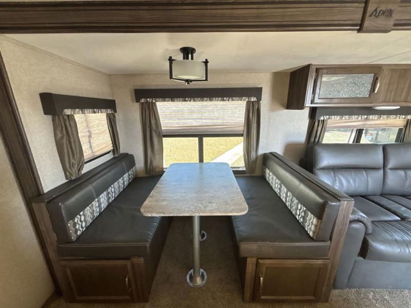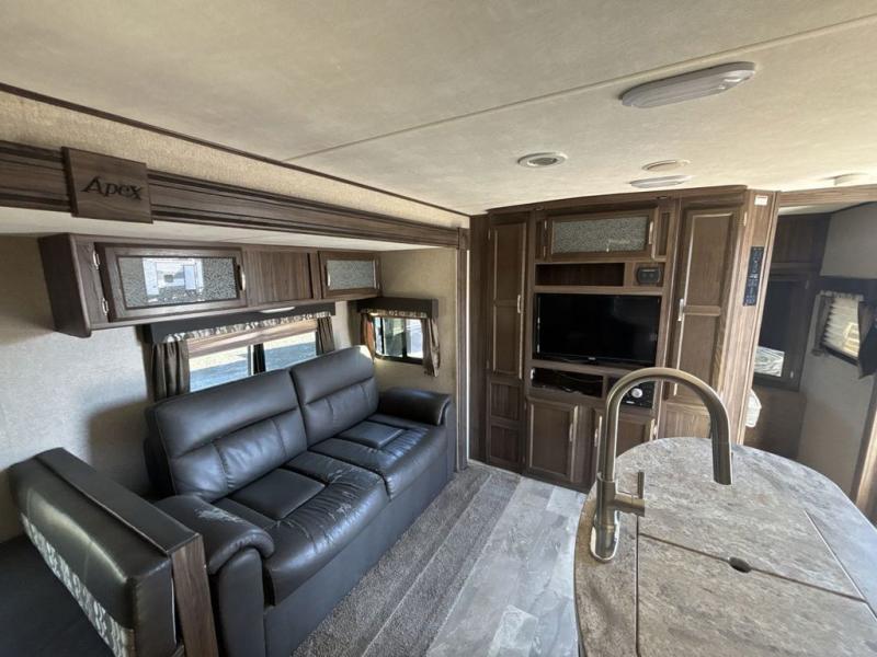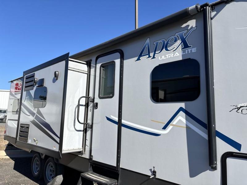 The Apex Ultra Lite travel trailer 276BHS by Coachmen RV has everything you need and more. There are two slide outs for added interior space, a set of double bed bunks that help this unit sleep eight easily, plus it also features a kitchen island and camp kitchen.