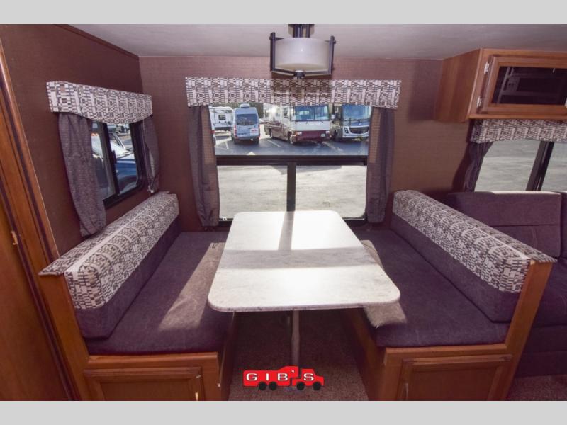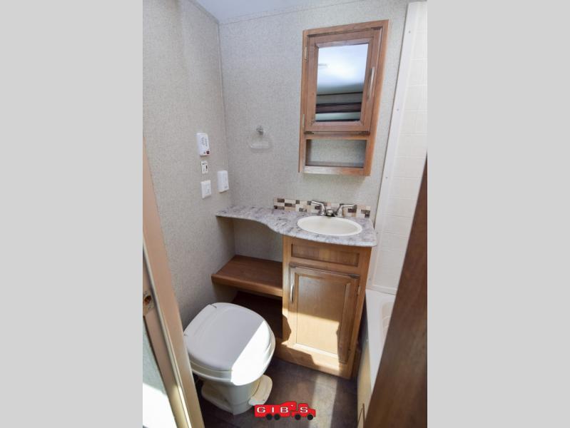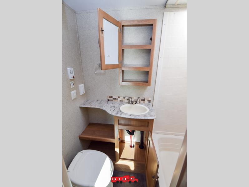 Next to the kitchen is a full bath which features a toilet, sink, medicine cabinet, and a tub/shower. A wardrobe for additional storage is just outside the bath door and next to the dinette.