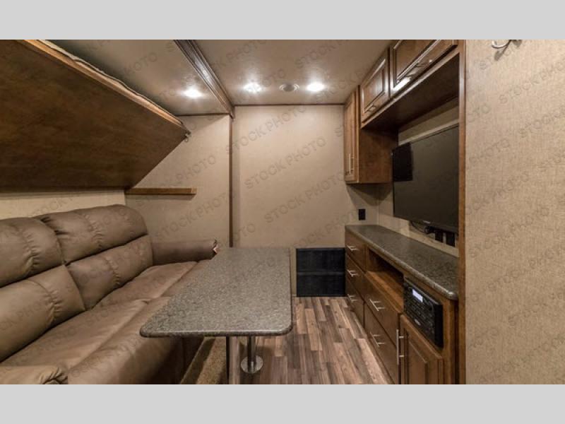 • Flip-down bunk above the sofa for additional sleeping capacity