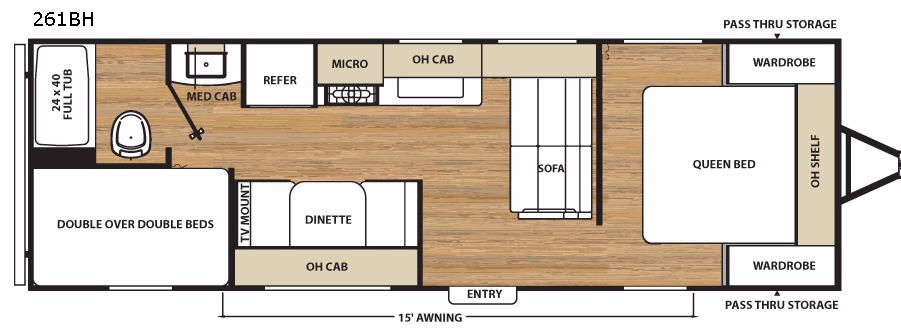 This Catalina SBX travel trailer is perfect for any get-away trip. Model 261BH features a rear corner bath, a set of double bed bunks, and so much more!