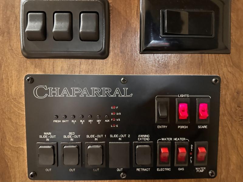 Enjoy camping with family and friends in this Coachmen Chaparral fifth wheel model 336TSIK. This unit offers triple slides for added interior space, a rear living layout, and a convenient kitchen island, plus more!