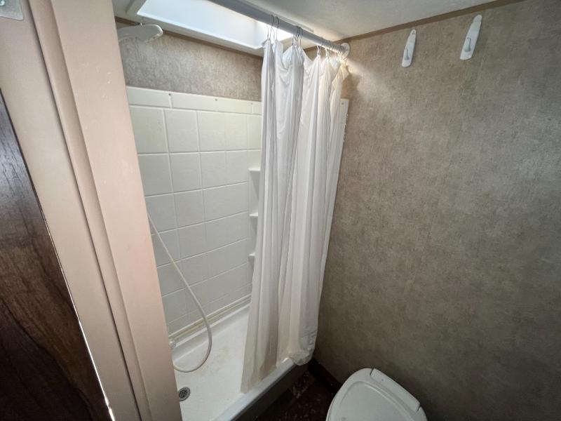 The rear of this Clipper Ultra-Lite model features a complete bath including a tub/shower in the curb side corner, a vanity with sink and overhead medicine cabinet opposite, plus a toilet, and so much more!
