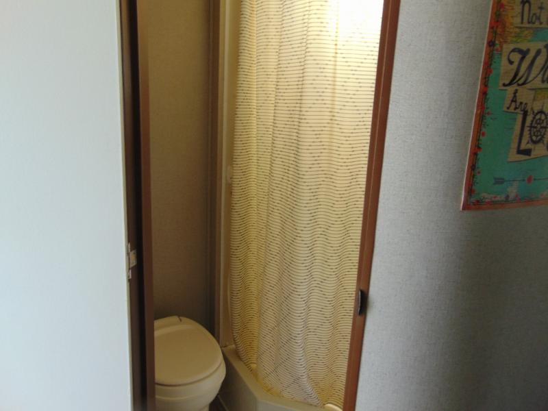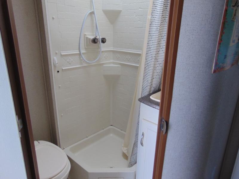 Lastly, enjoy the convenience of a full functioning bath including an angled shower, toilet, and sink, plus so much more!