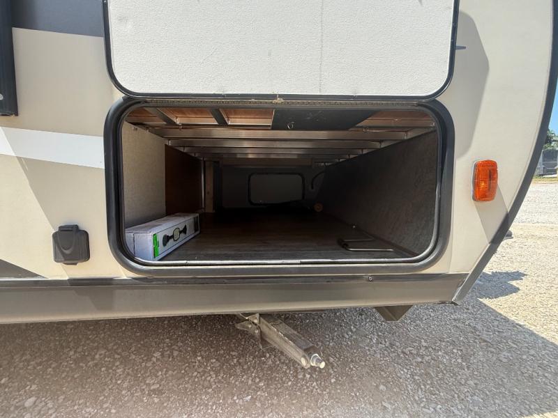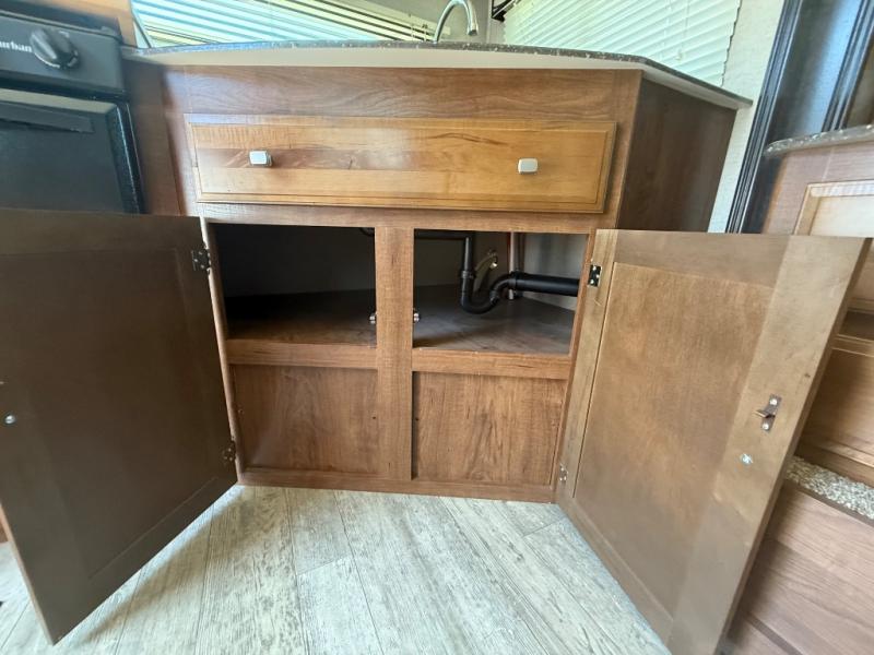 There is also a pass-thru compartment up front that can be accessed by two large exterior doors. This is perfect storage for all of your outdoor camping gear, plus so much more!