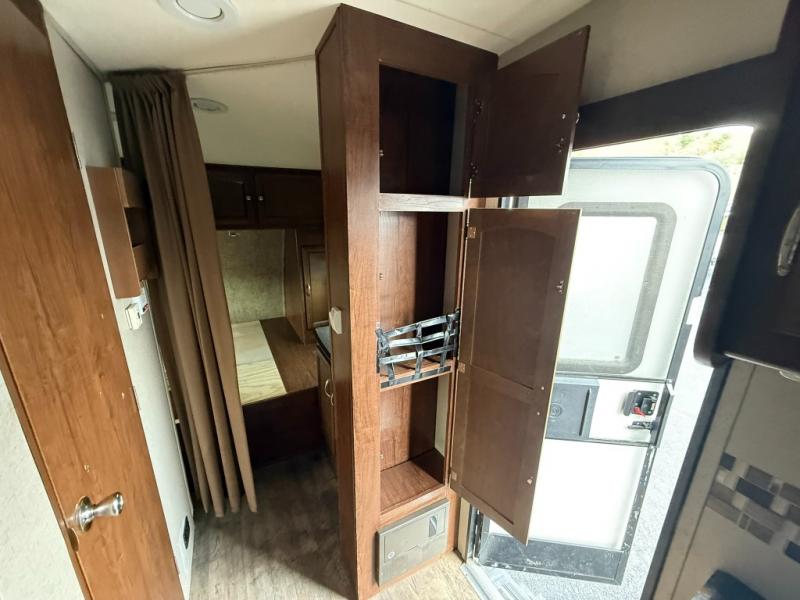 You will find plenty of storage throughout the interior with a pantry, and several convenient overhead storage cabinets. For all of your outdoor gear there is a front pass-through storage compartment, and so much more!