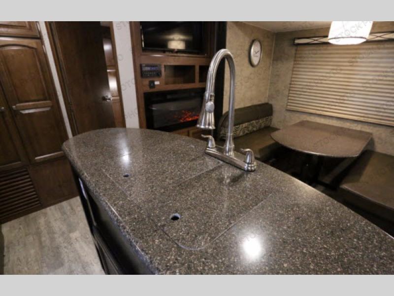 Enjoy plenty of storage both inside and out with a front pass-thru storage compartment for all your outdoor gear. And, the added convenience of a rear exterior camp kitchen for all your outdoor cooking needs, plus so much more!