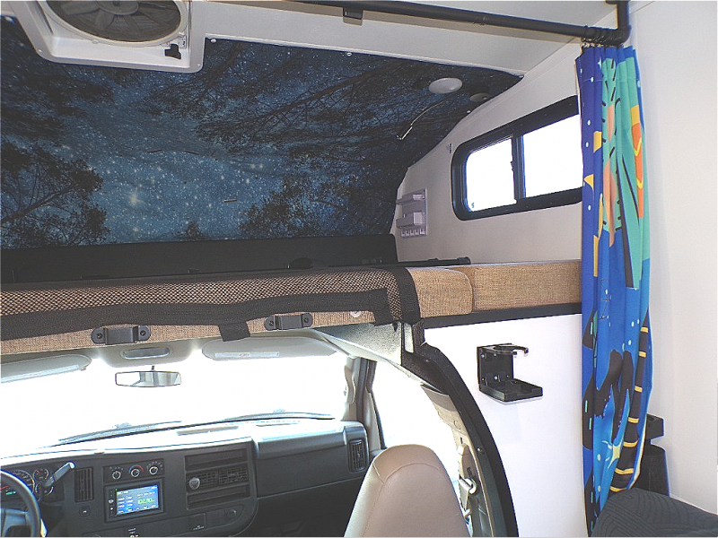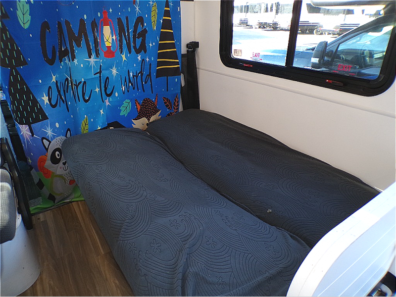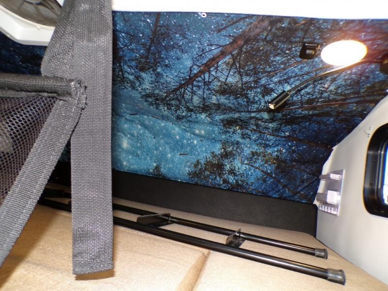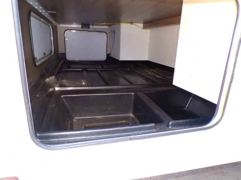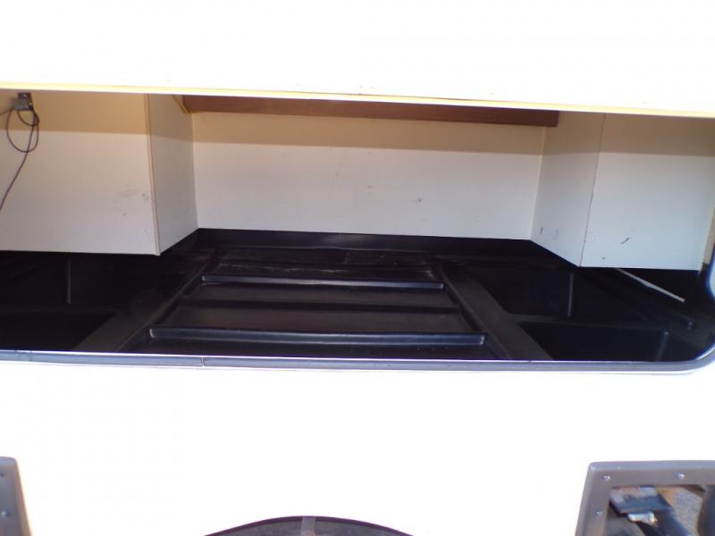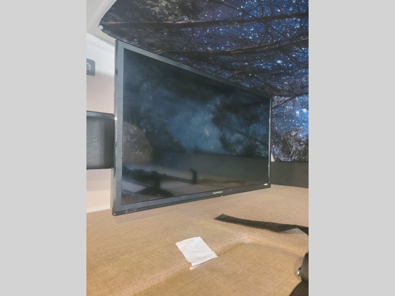 There is a 57" x 95" overhead bunk above the cab area for added sleeping space, plus a swing arm TV for your enjoyment.