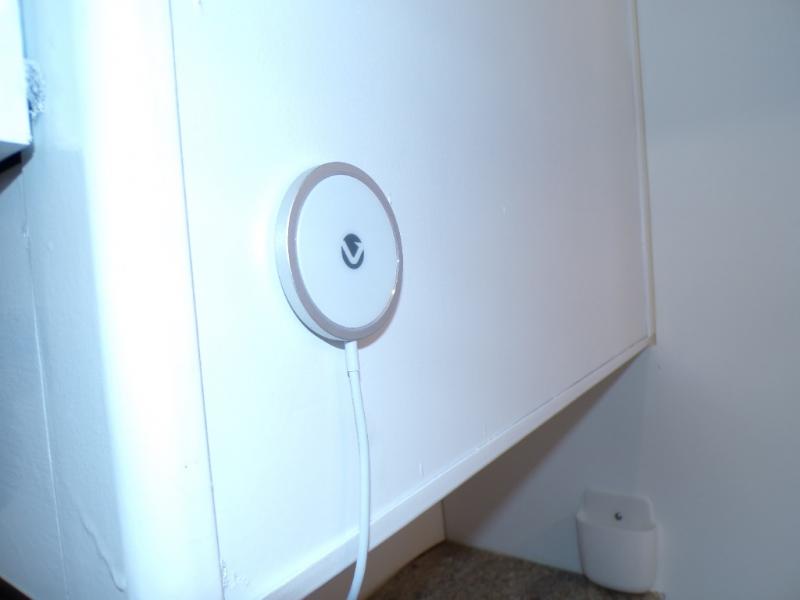 The very rear of the coach is where you can relax and enjoy a great nights sleep. There is a queen size bed with nightstand on one side and wardrobes for hanging clothes on both sides, plus an overhead cabinet to keep things neat and organized.