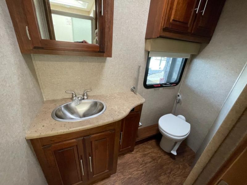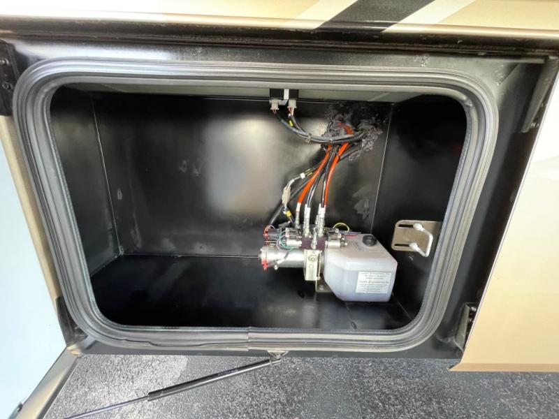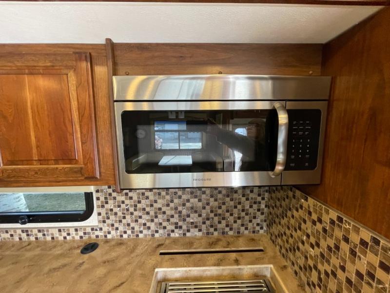 The very rear is where you will find it easy to catch a wink or two with a slide out king size bed including overhead storage. There is also a large rear wardrobe and dresser for your clothing, plus a space has been prepped for a washer/dryer if you choose to add the convenience, as well as a 32" LED TV to enjoy from bed.