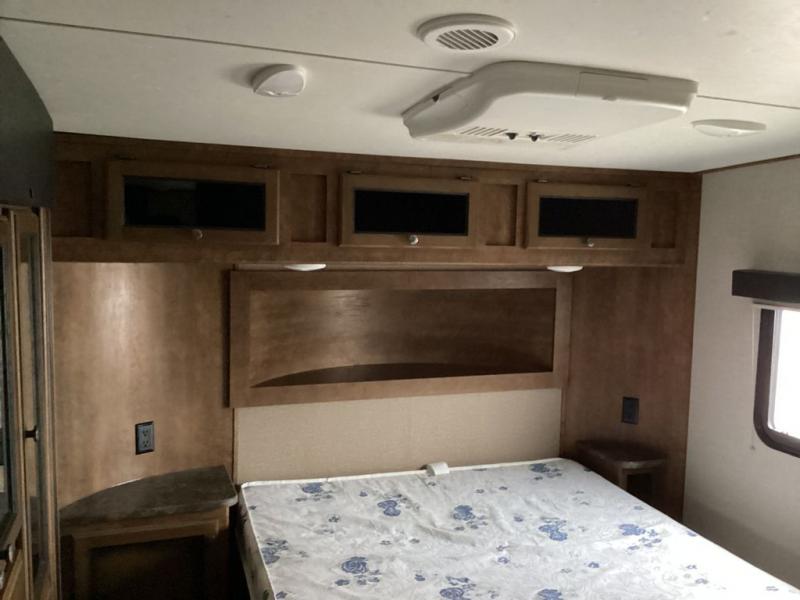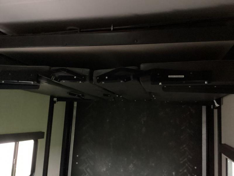 Inside the bedroom you will find a bed along the front wall with nightstands on either side, and an overhead cabinet. There is a wardrobe/closet slide, which provides additional storage, and more!