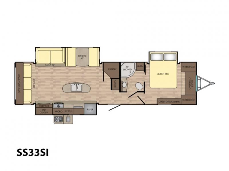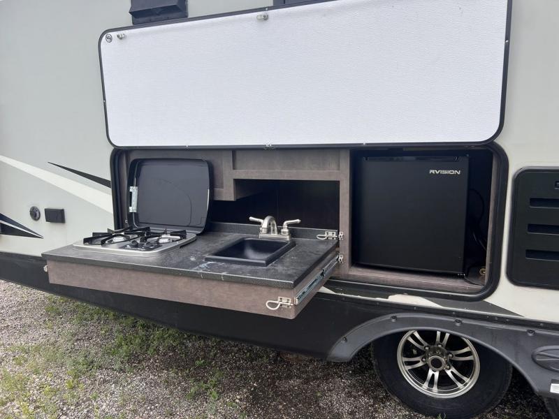 Great Weekend Camper!Enjoy camping with your family in this CrossRoads Sunset Trail Grand Reserve model SS33I. This unit features a rear living layout, triple slides for extra room inside, and an outdoor kitchen for the chef in the family to enjoy!